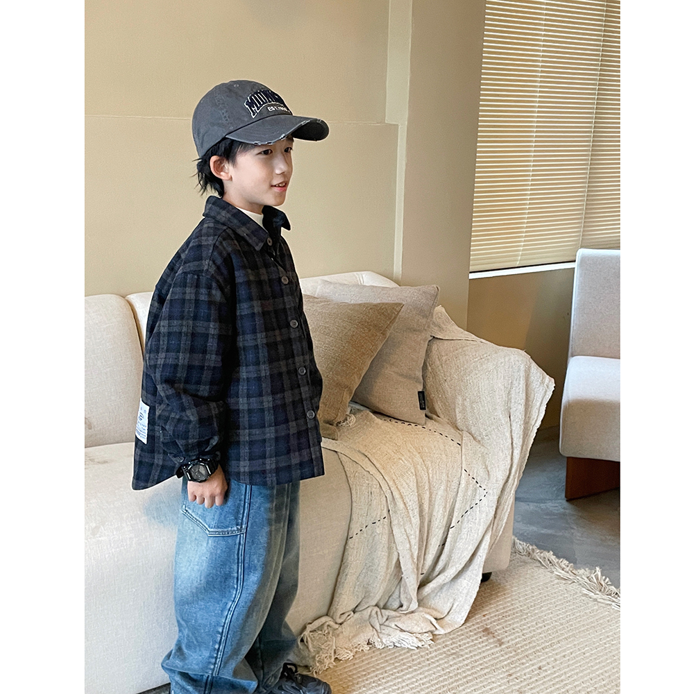 男童衬衫外套儿童夹棉格子衬衣加厚男孩冬装加绒2025冬季秋冬棉服