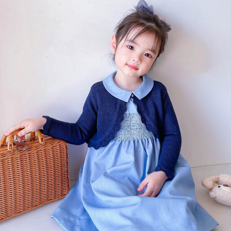 Toulejour女宝针织开衫毛衣春秋新款欧风短打一粒扣儿童时髦披肩