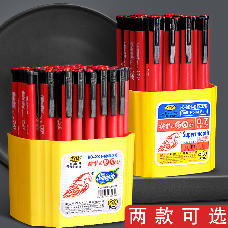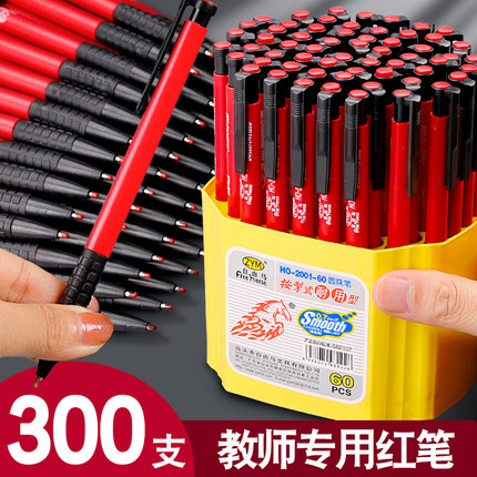 高颜值红色圆珠笔批发按压式0.7mm油笔中性笔原子笔教师用批改文具老式圆珠笔芯学生老师专用按动红油笔包邮