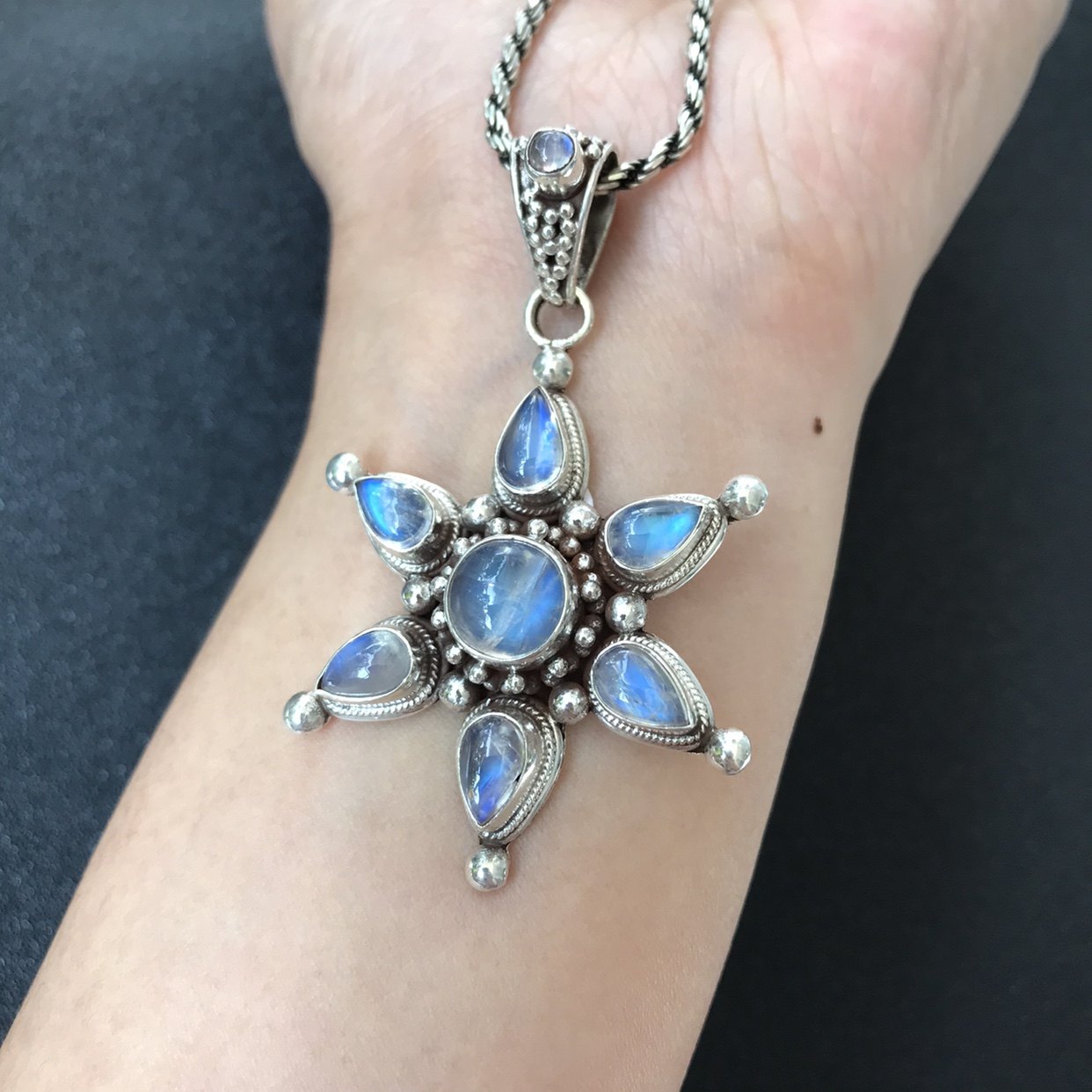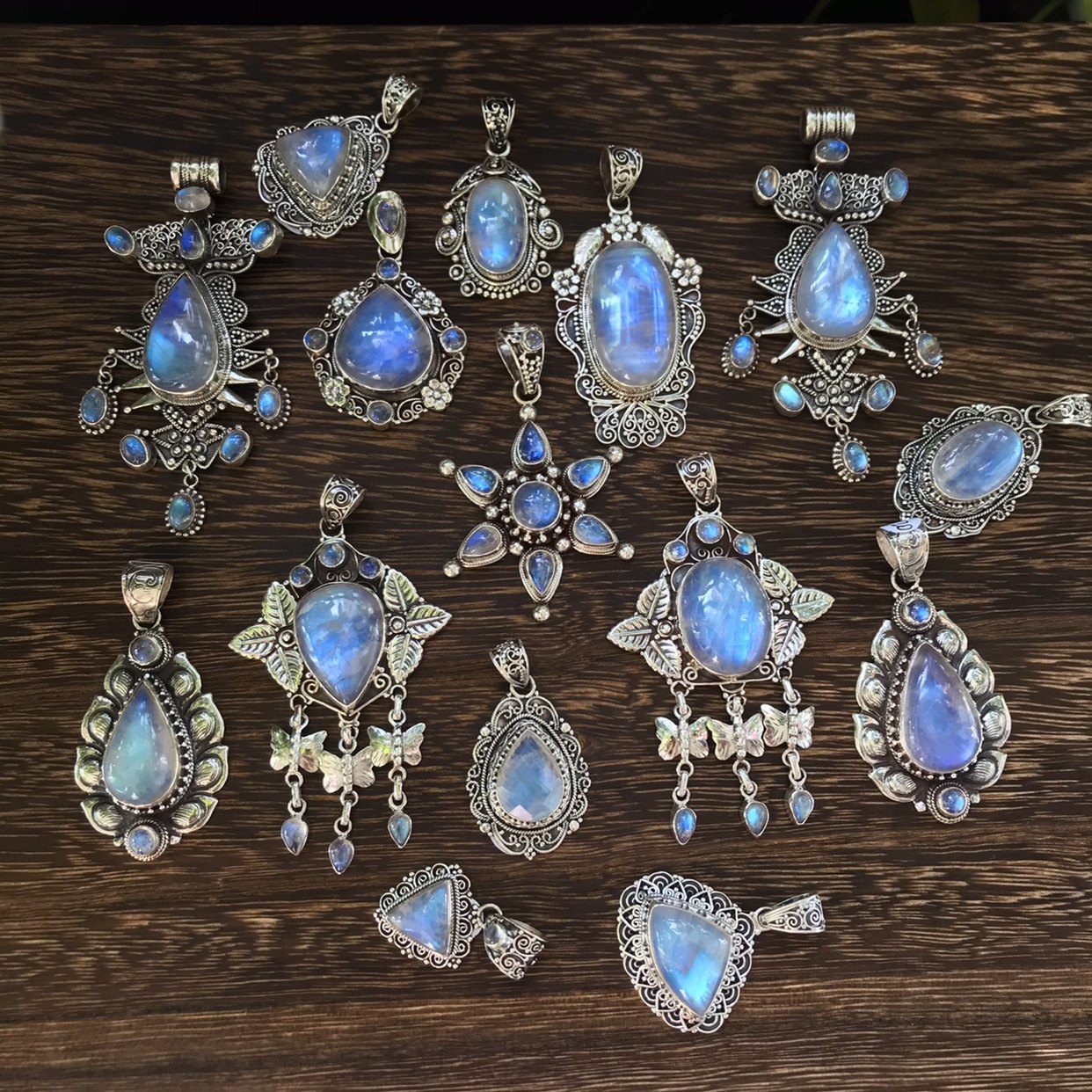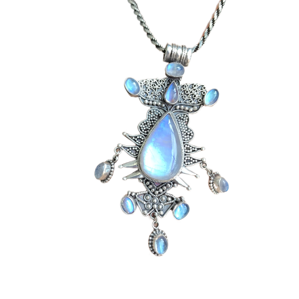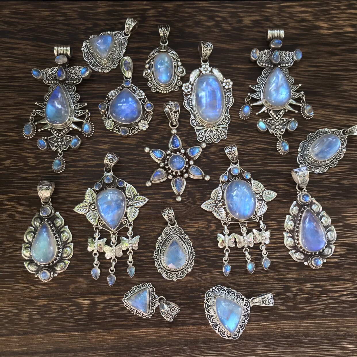 凉玥 尼泊尔手工精工复古宫廷风重磅拉丝925纯银月光石流苏吊坠