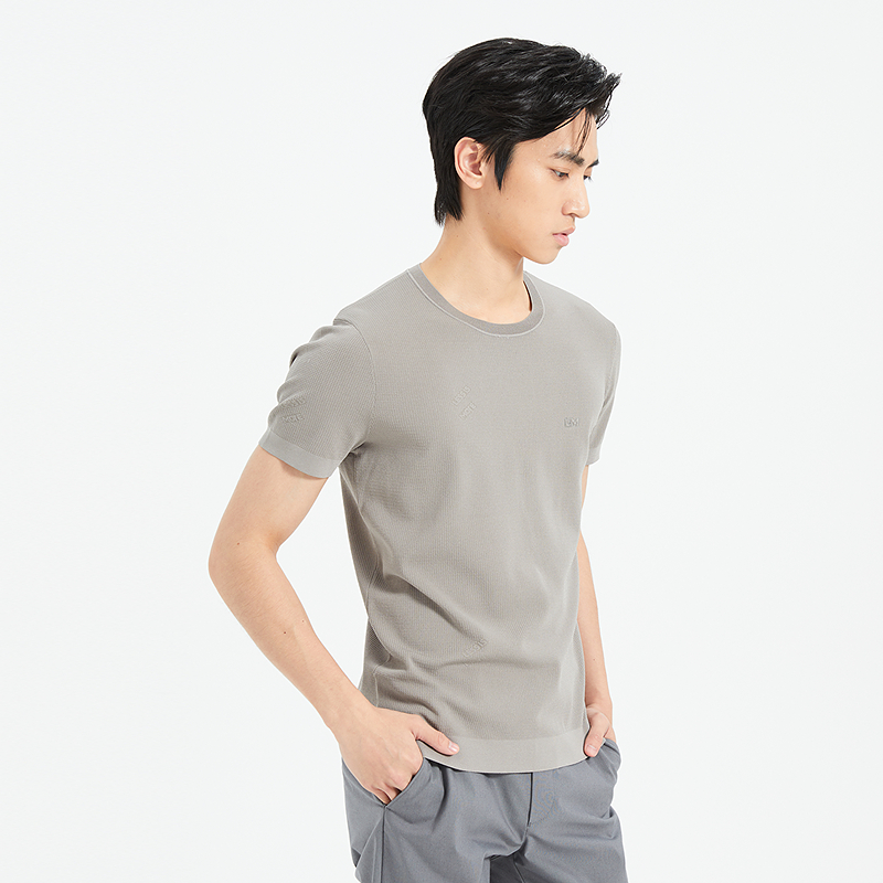 【三平提花】利郎奥莱短袖t恤2025夏季新款时尚圆领休闲时尚短t男