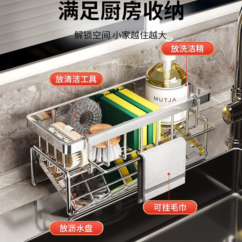 304不锈钢厨房置物架抹布架收纳沥水架钢丝球水池水龙头水槽收纳