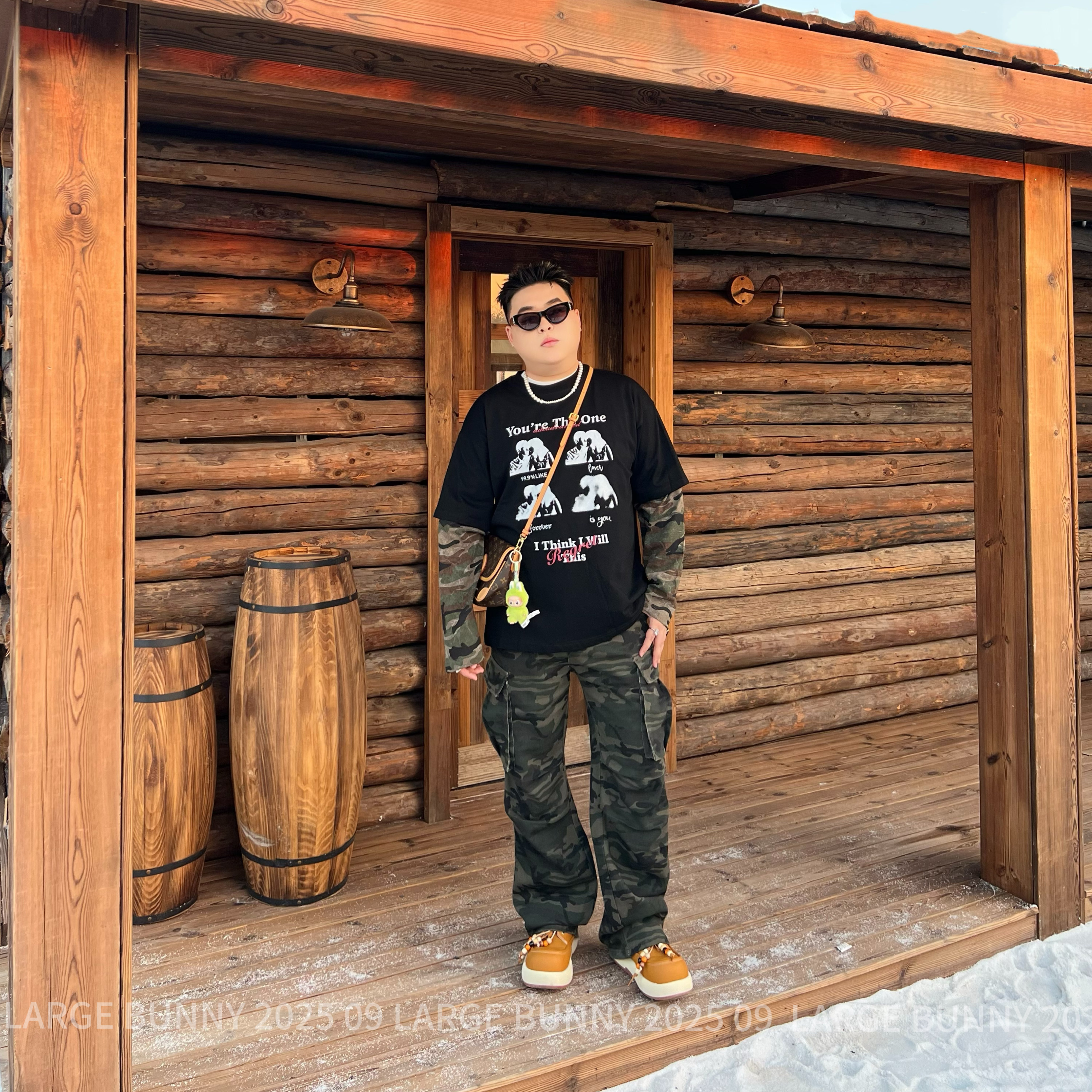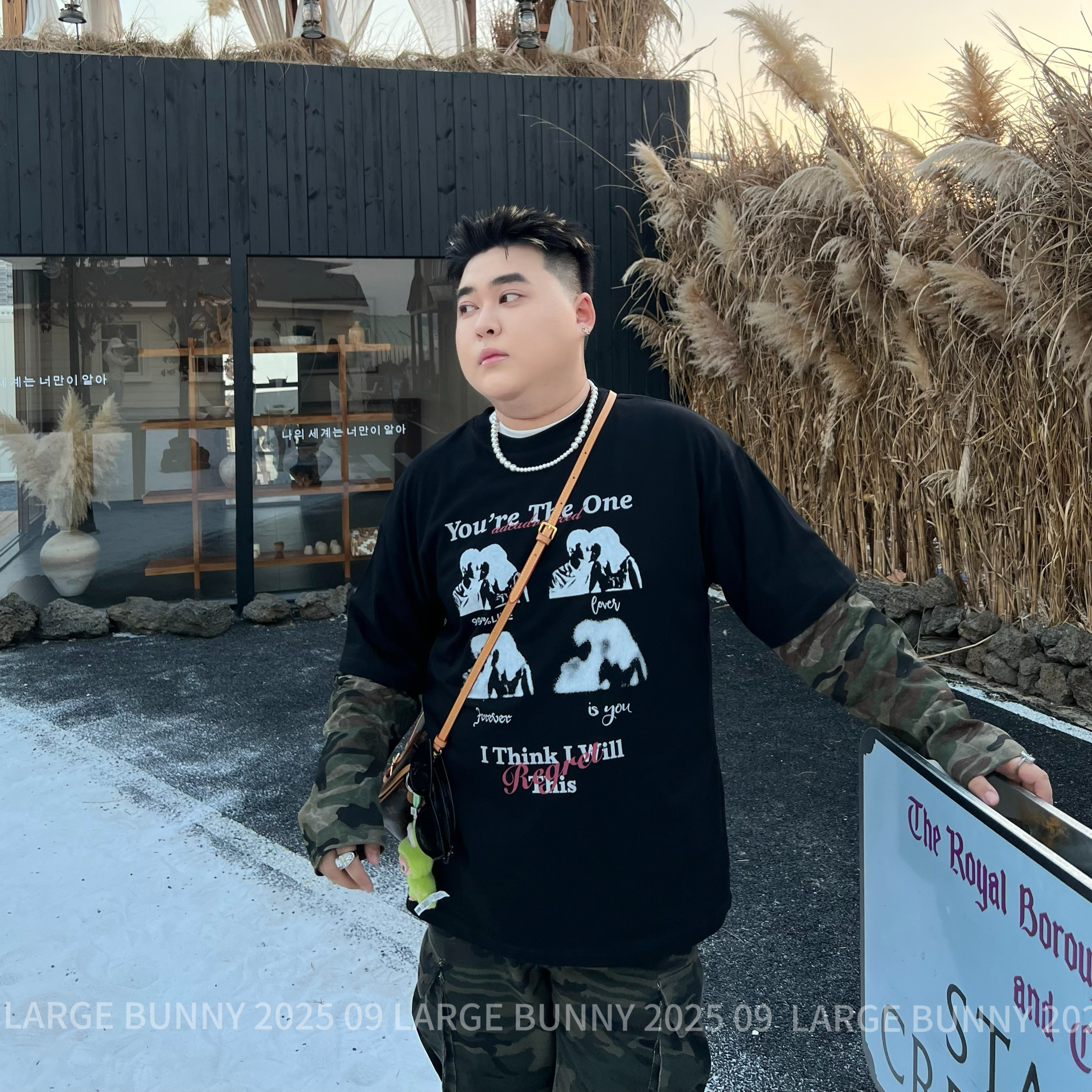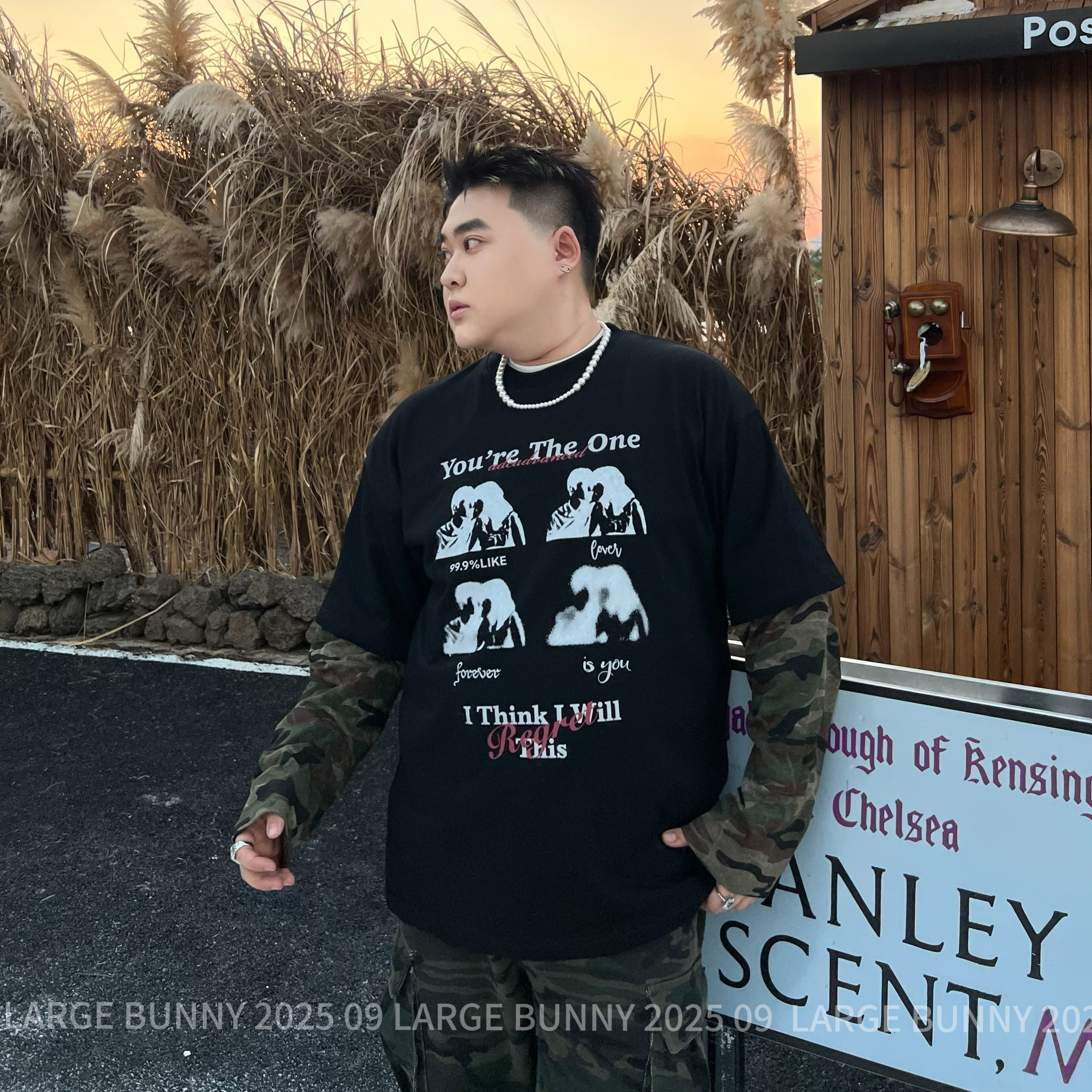 阿胖胖 大码潮流韩版假两件卫衣印花T恤男夏季宽松休闲百搭上衣