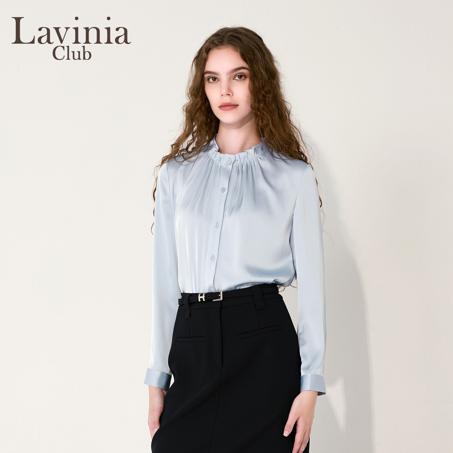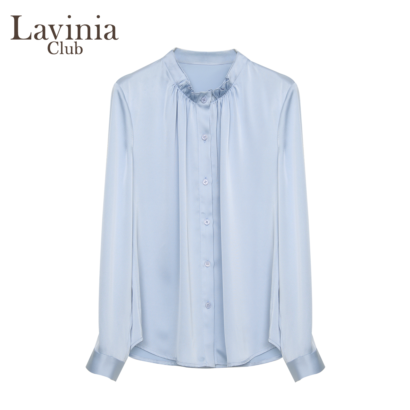 Lavinia蓝色木耳边立领长袖衬衫女秋2025新款职场通勤衬衣J55C111