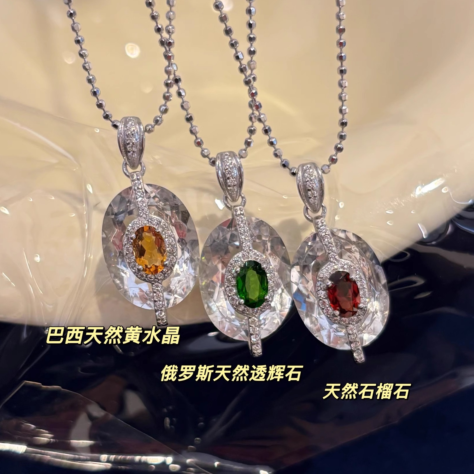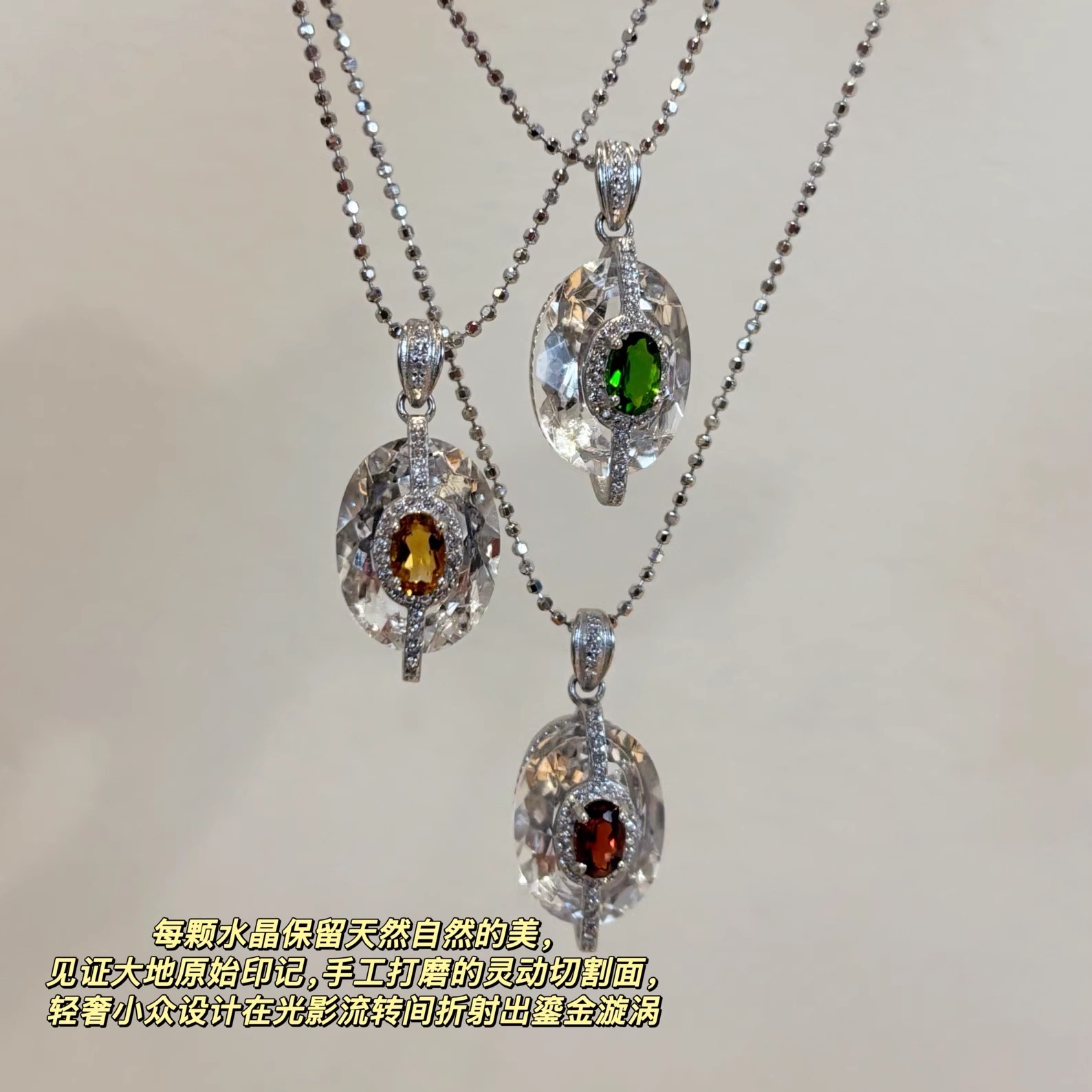 轻奢精致招财转运天然黄水晶白水晶吊坠项链s925银高级感锁骨链女