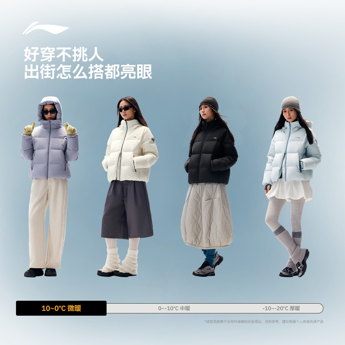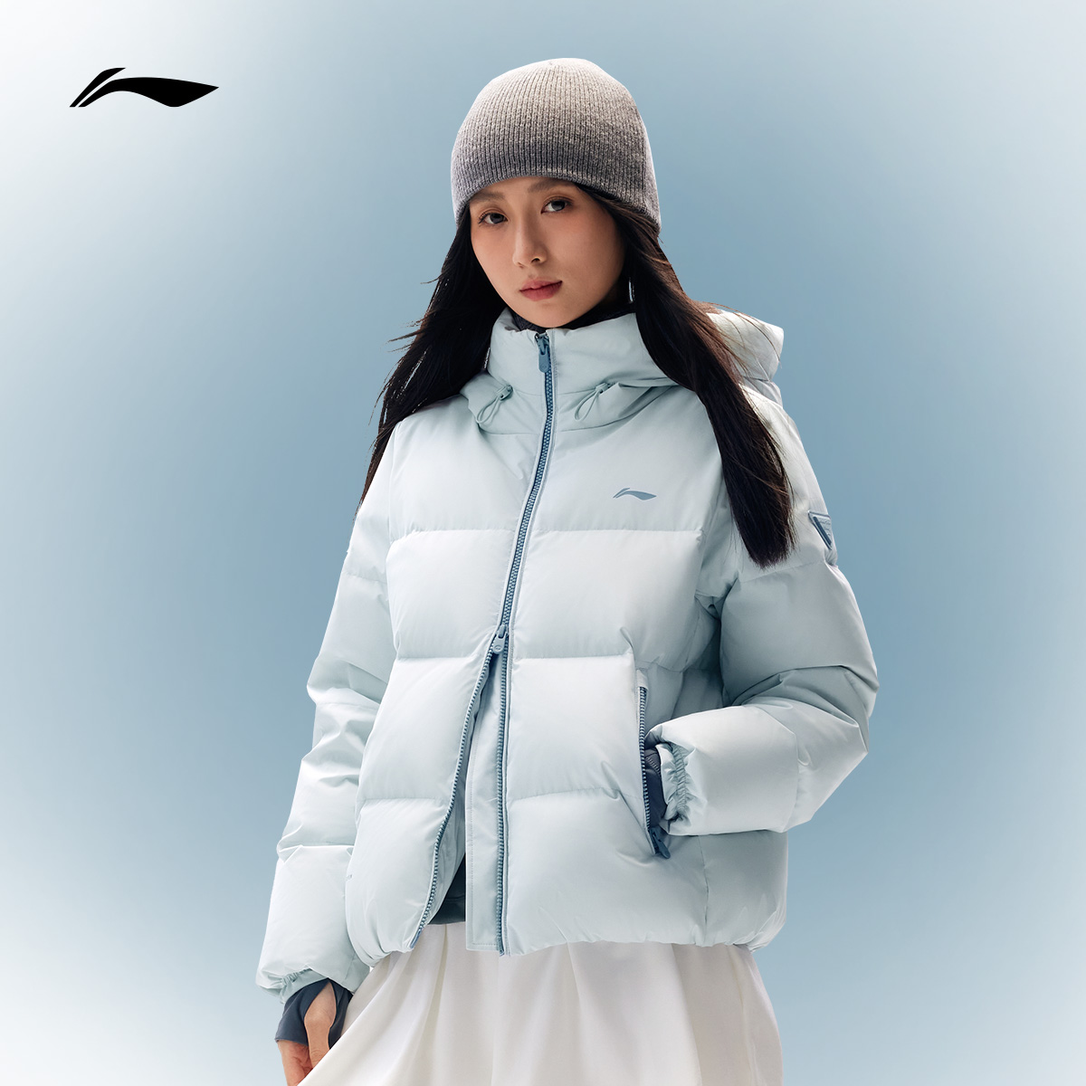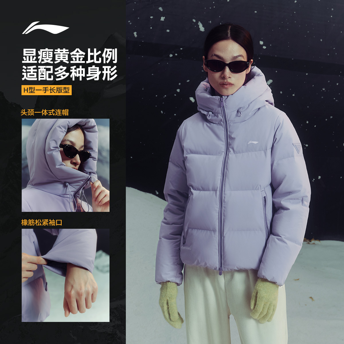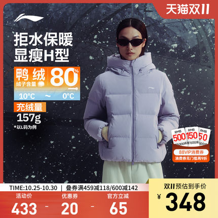 李宁防泼水连帽女短羽绒服运动服