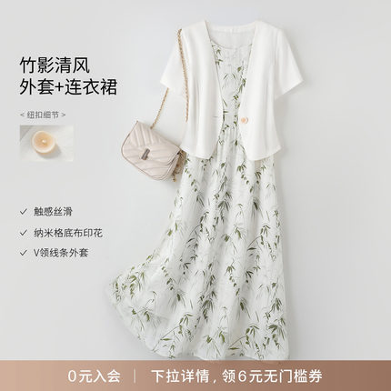IHIMI/海谧 2025夏季新品时尚百搭气质素色外套+背心连衣裙套装女