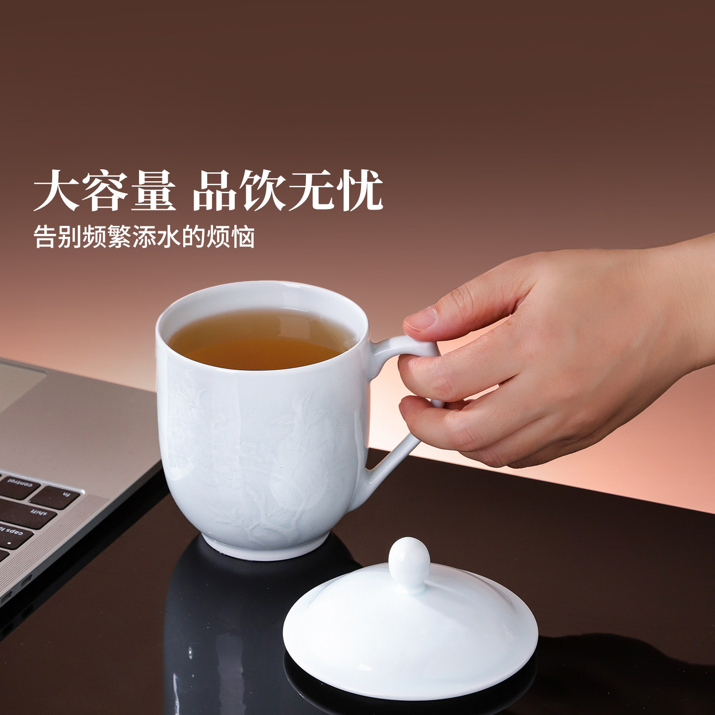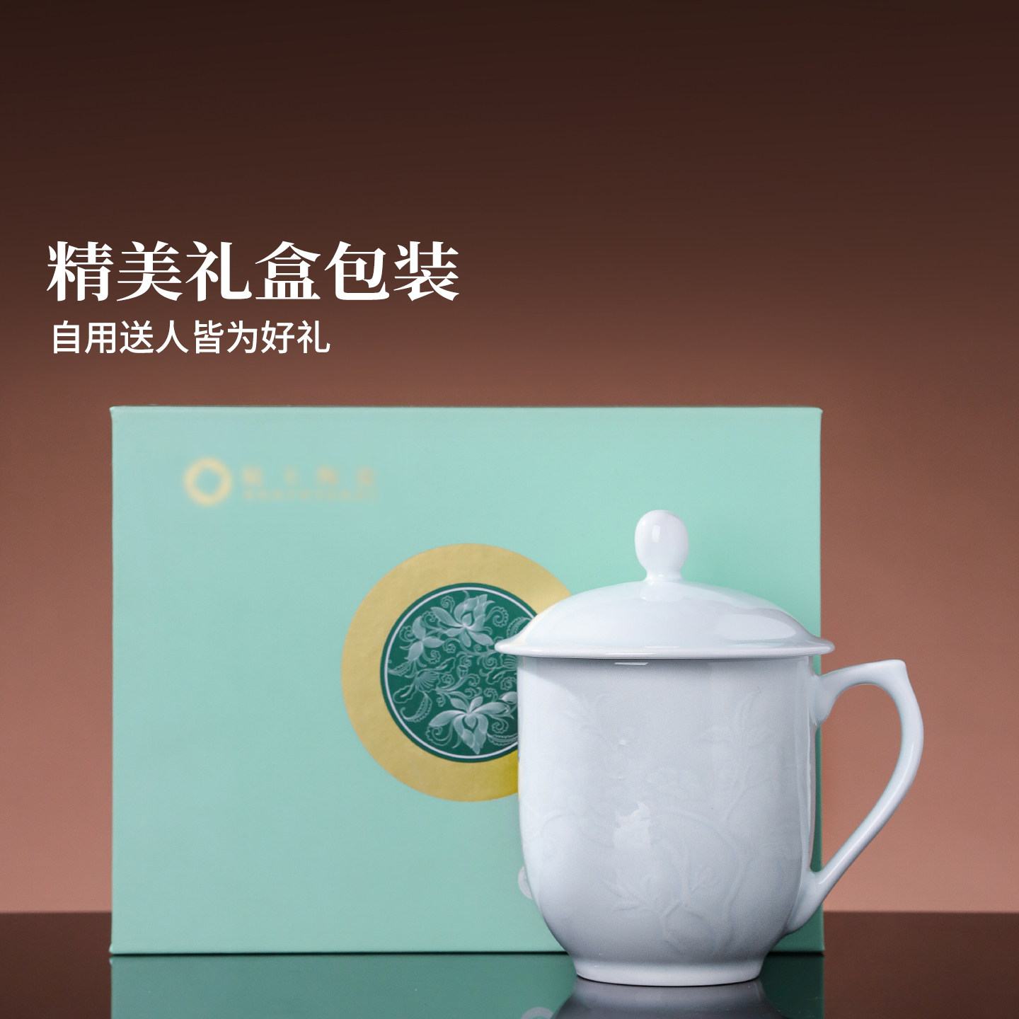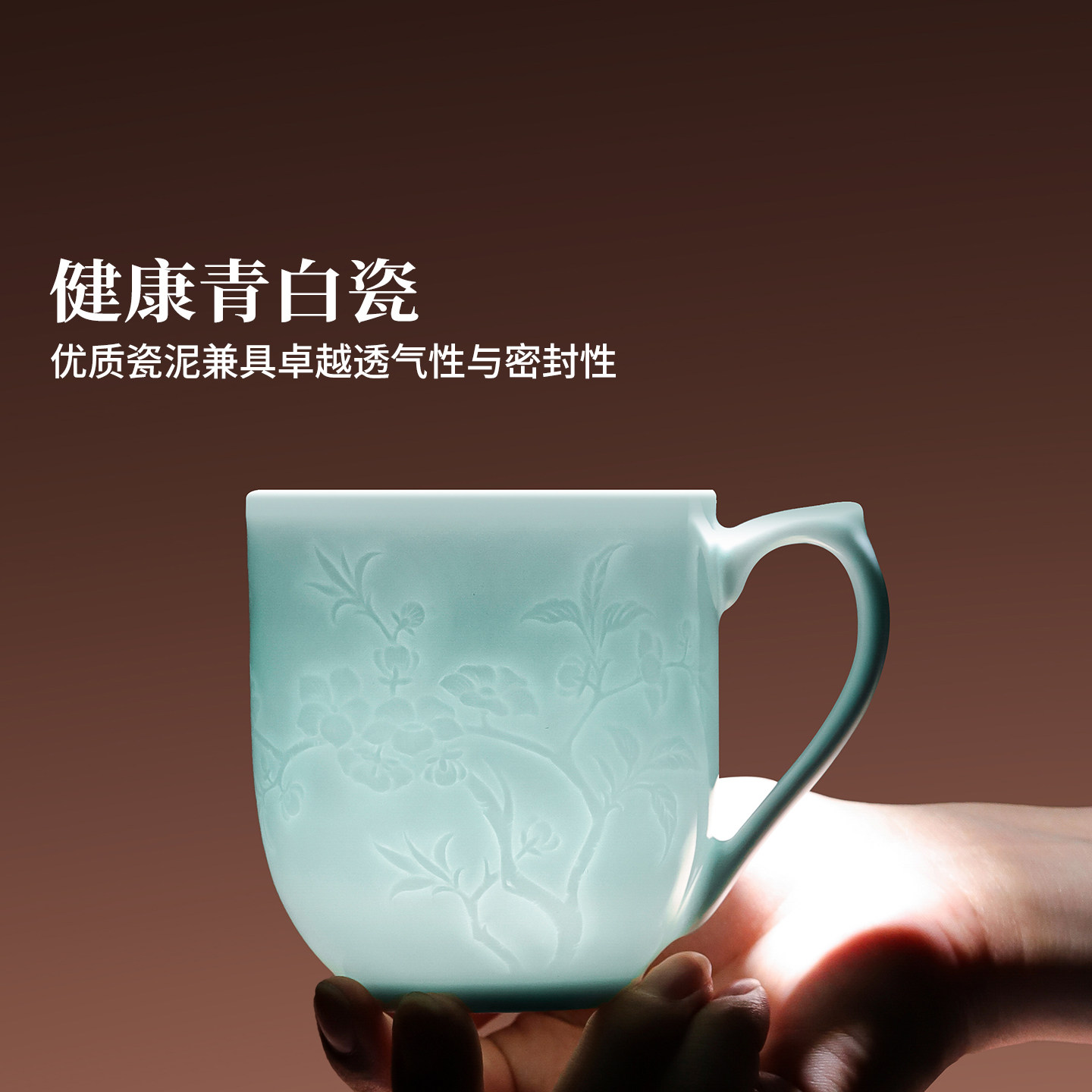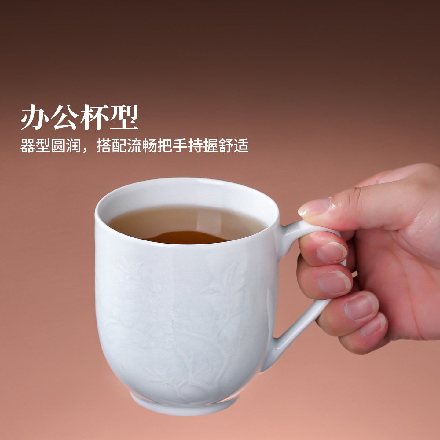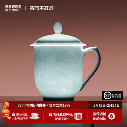 景德镇官方陶瓷影青中式办公杯喝水杯家用大容量泡茶杯礼物马克杯