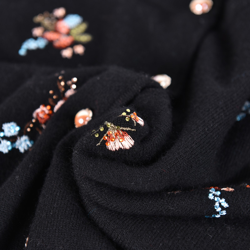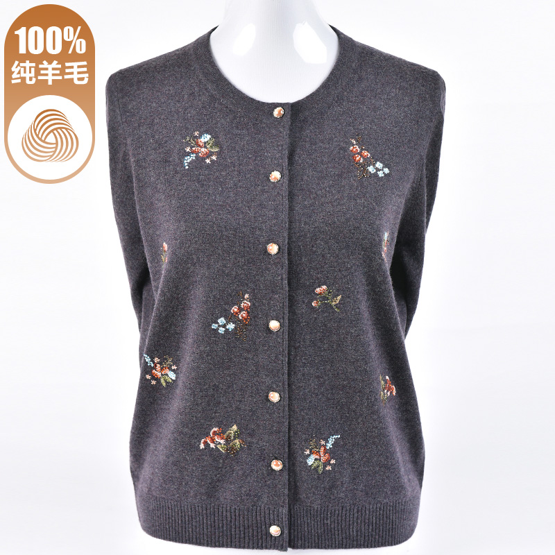 春秋冬妈妈装黑色纯羊毛衫外套新款中老年女装针织衫奶奶毛衣开衫