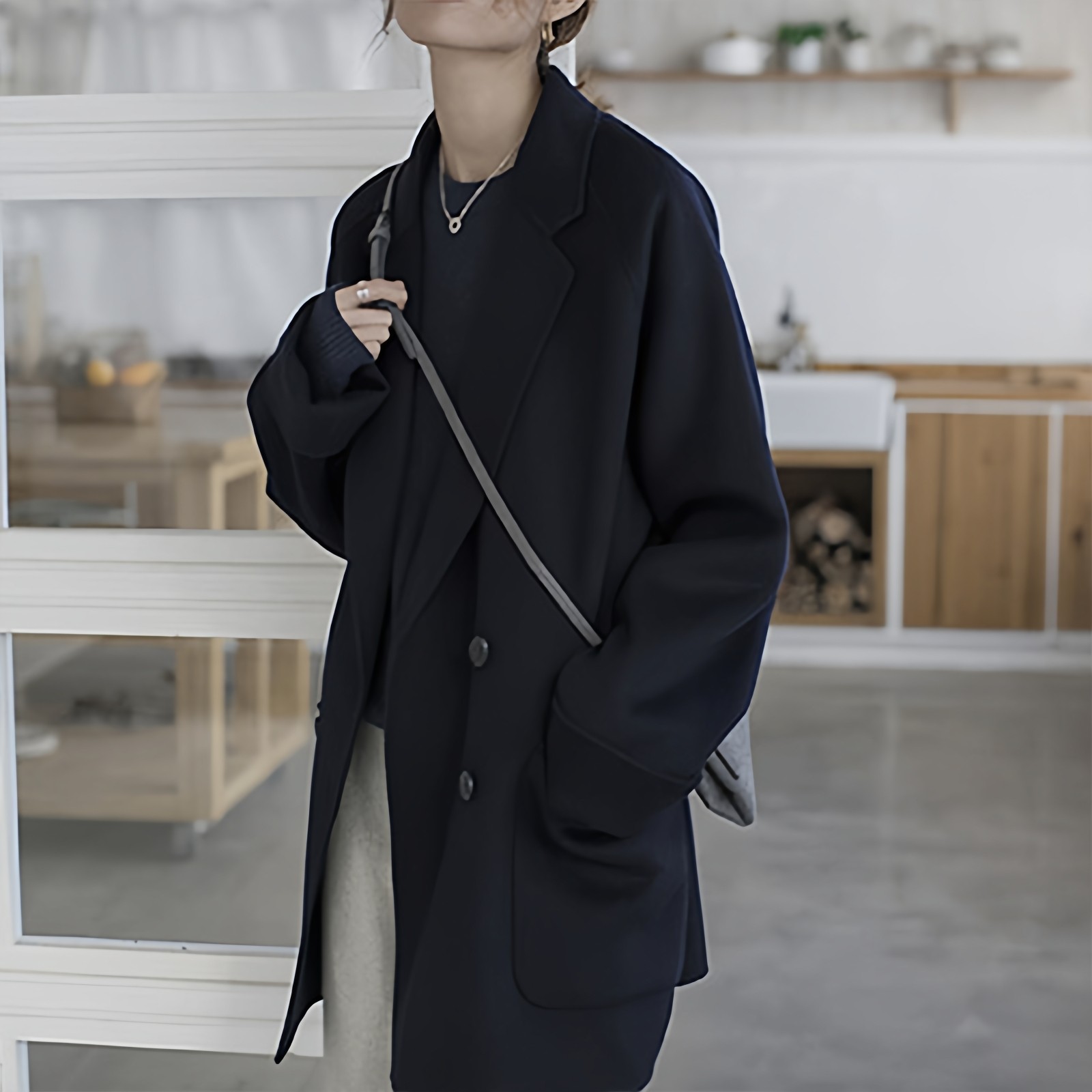 大码夹棉加厚毛呢外套女装秋冬显瘦中长款宽松防羊毛呢子大衣胖mm
