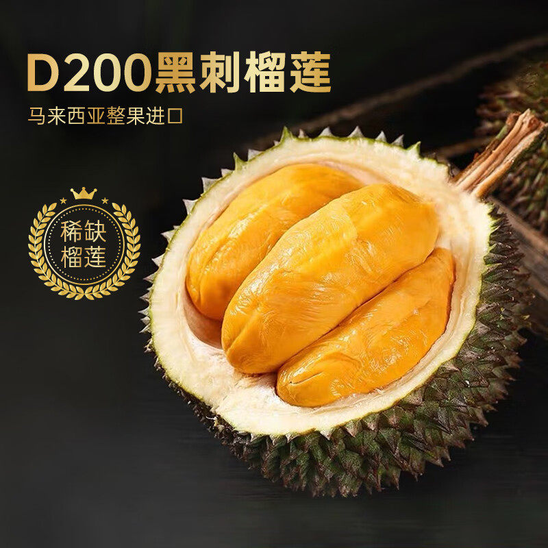 喜得猫黑刺榴莲D200马来西亚进口液氮冷冻水果礼盒甄选果顺丰包邮