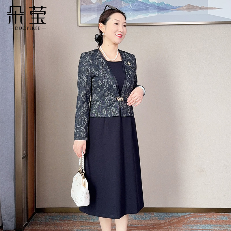 朵莹妈妈秋装端庄大气连衣裙2025新款中年女装洋气裙子中老年长裙