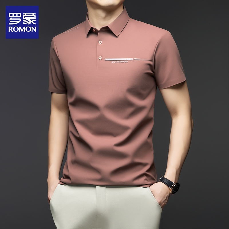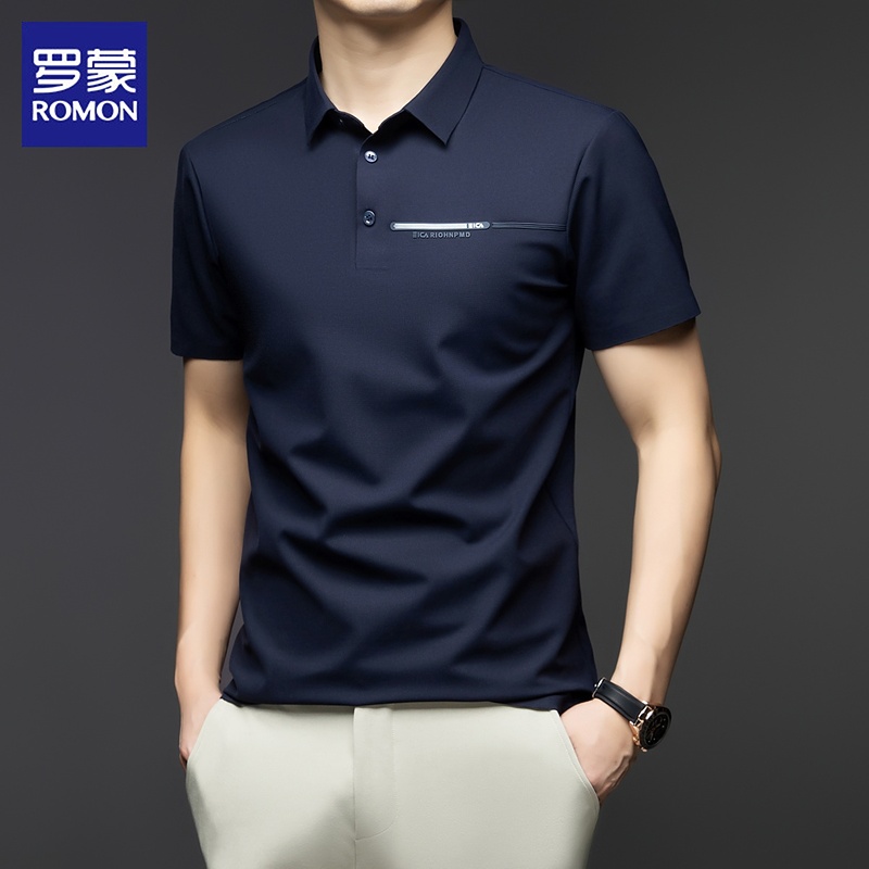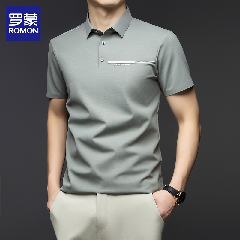罗蒙男士短袖t恤夏季新款冰丝凉感半袖上衣商务休闲翻领polo衫男