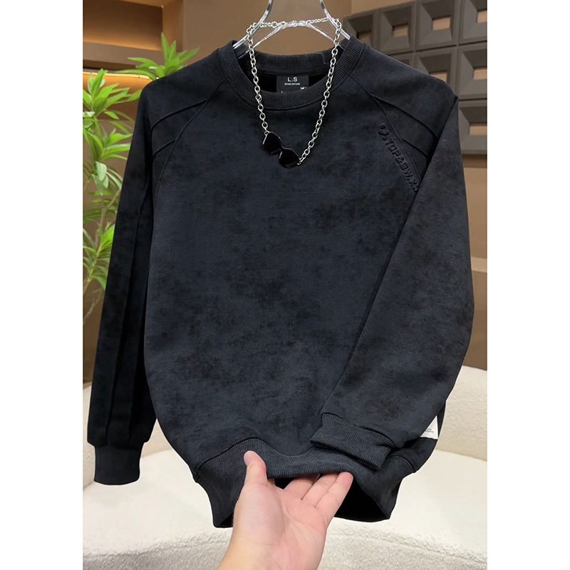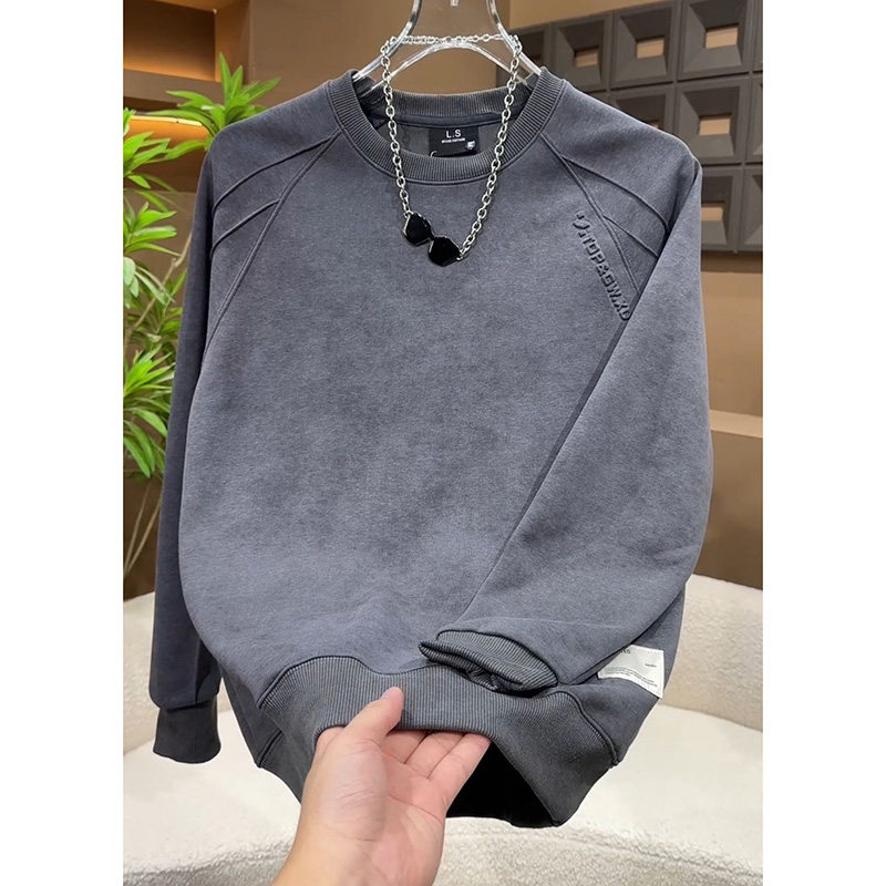 圆领加绒卫衣男美式潮牌春秋款长袖打底衫扎染青年衣服男2025新款