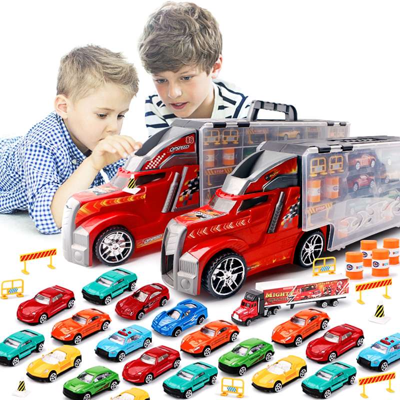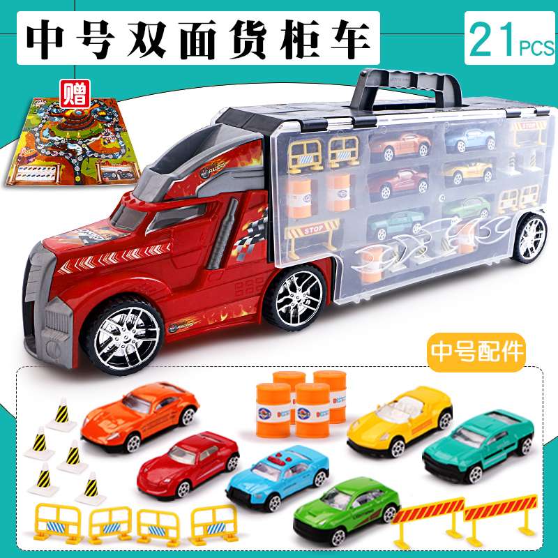 儿童货柜车玩具合金小汽车套装男孩收纳小车男童卡车拖车三岁金小