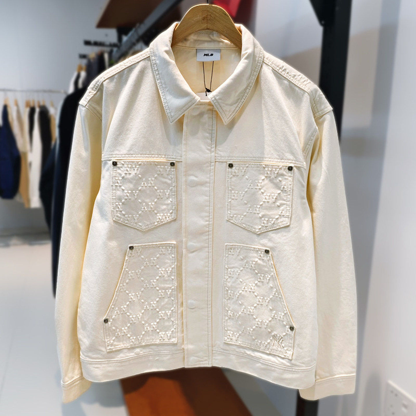 MLB男女同款牛仔外套NY老花拼接