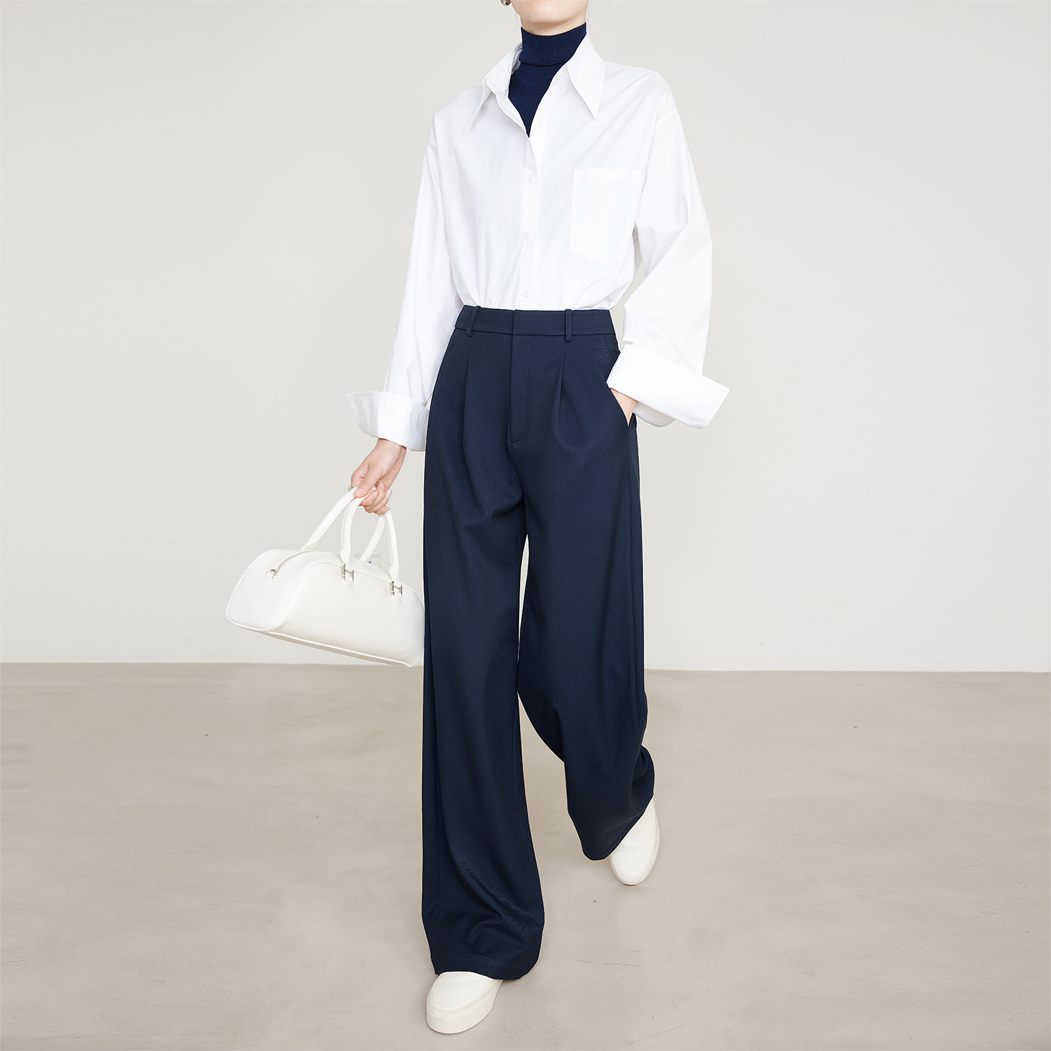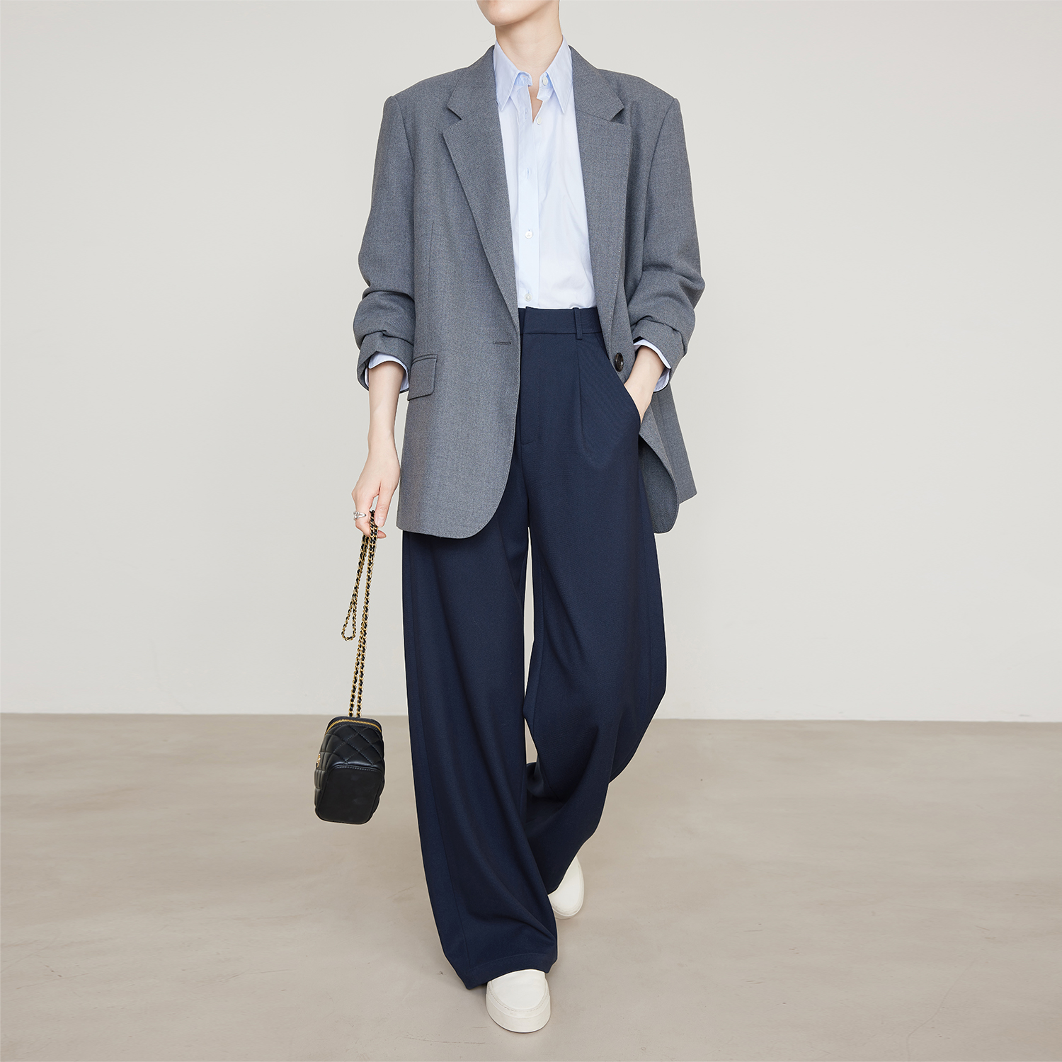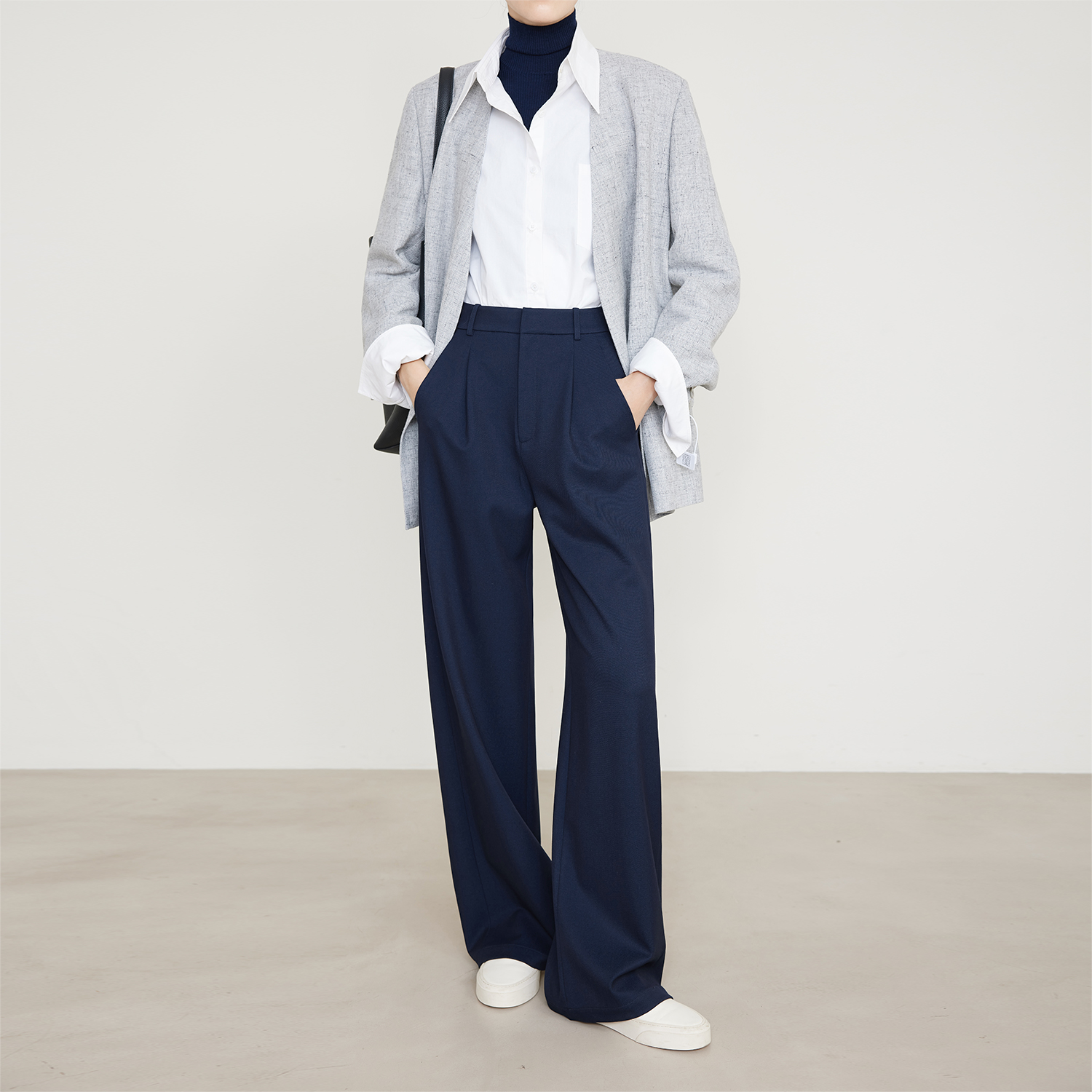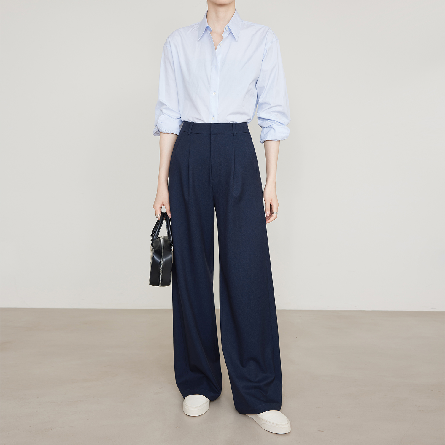 夏莫卡极简通勤显瘦阔腿西装裤