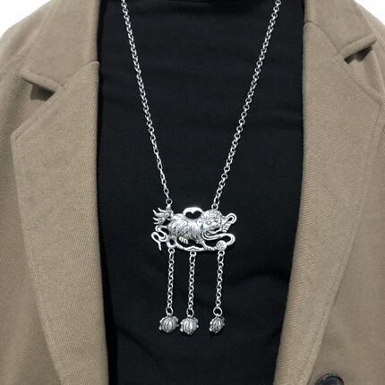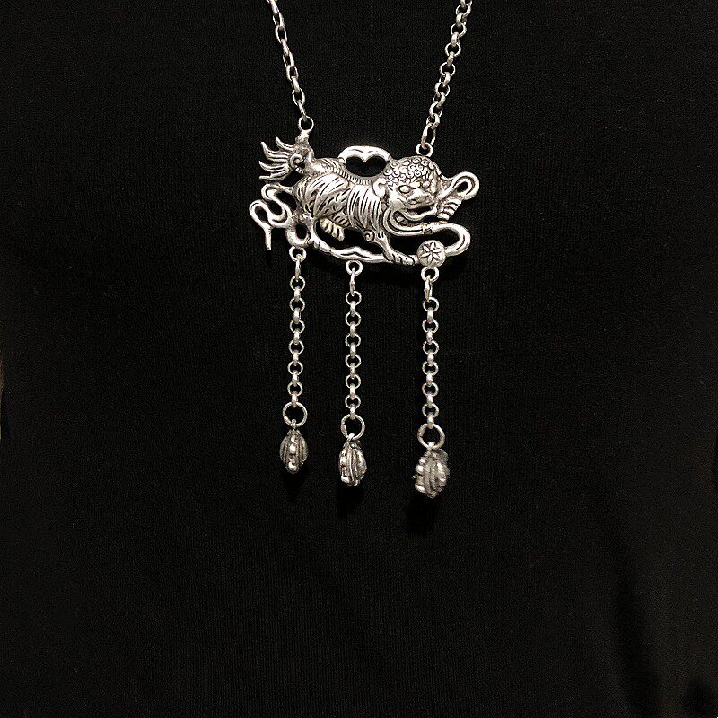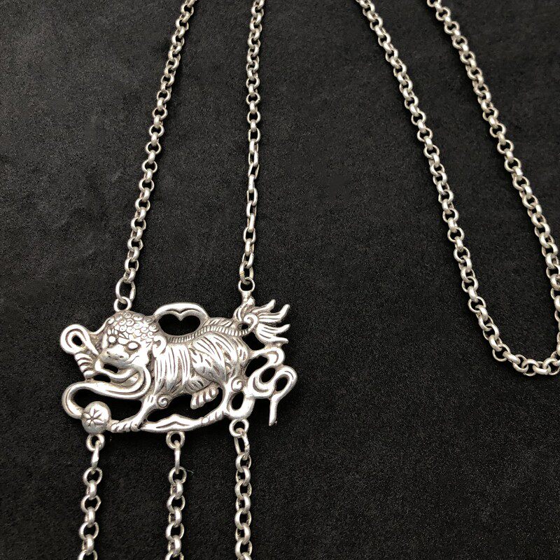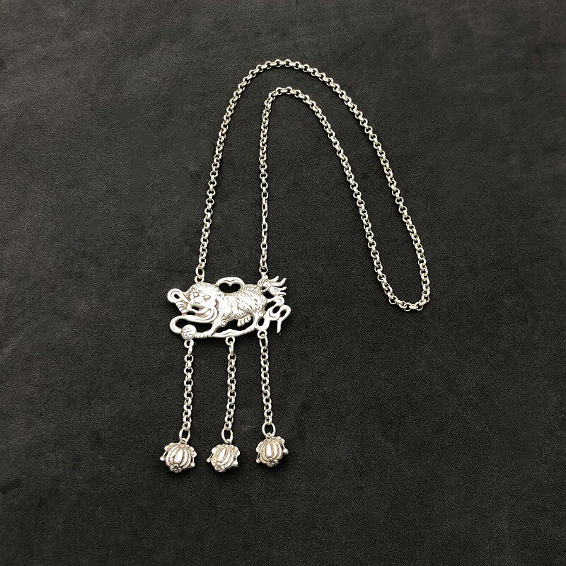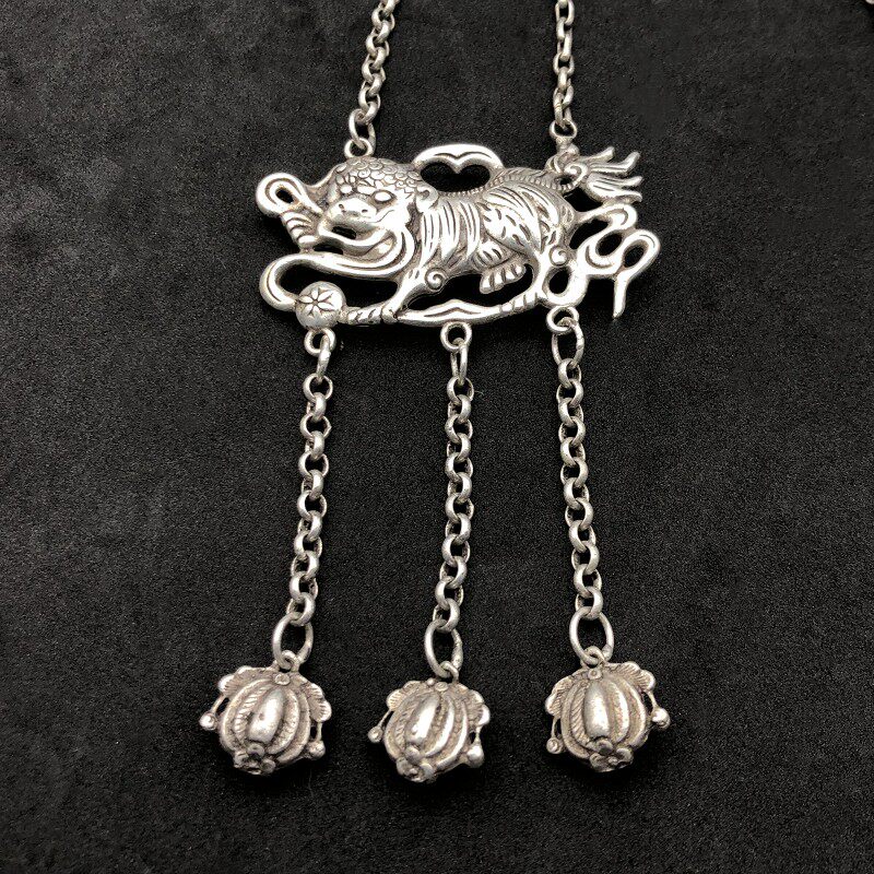 复古苗银平安锁扣汉服搭配吊坠貔貅长命锁复古纯手工苗族小银饰