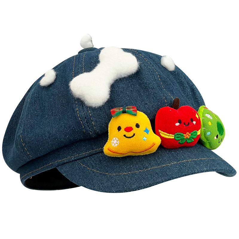 2025新款可爱卡通苹果梨牛仔八角帽子女夏季休闲百搭贝雷帽学生潮