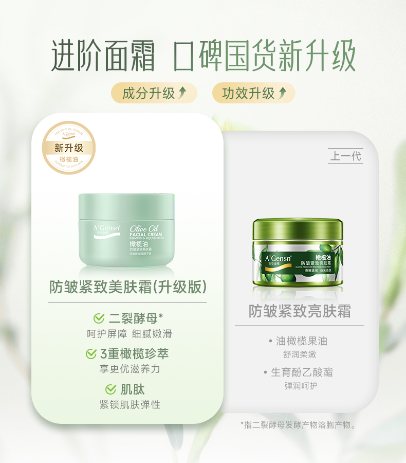 安安金纯橄榄油防皱紧致亮肤霜60g淡化细纹补水保湿面霜女正品
