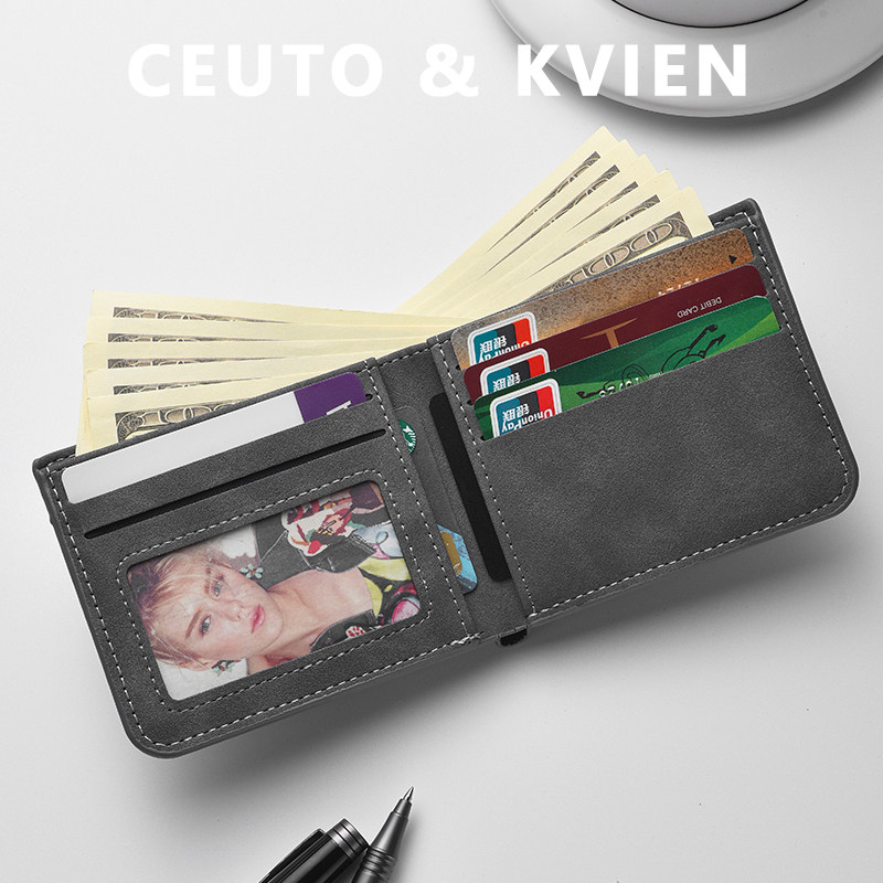 CEUTOKVIEN翻毛皮钱包男士短款简约超薄皮夹卡包男款钱夹女证件