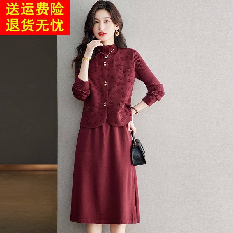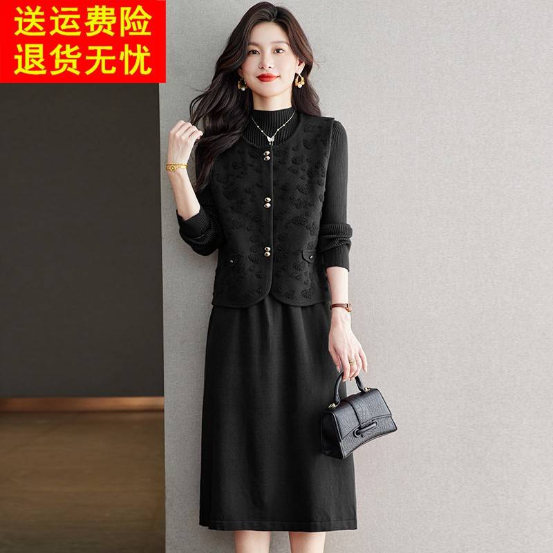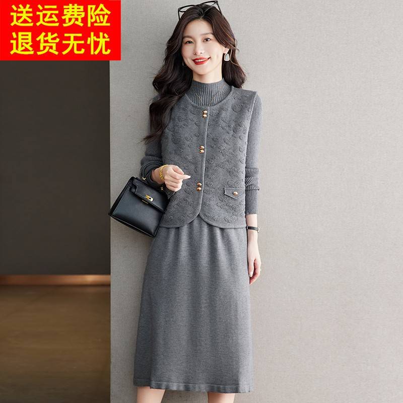 高级感羊毛马甲针织连衣裙两件套装2025秋冬新款打底中长款毛衣裙
