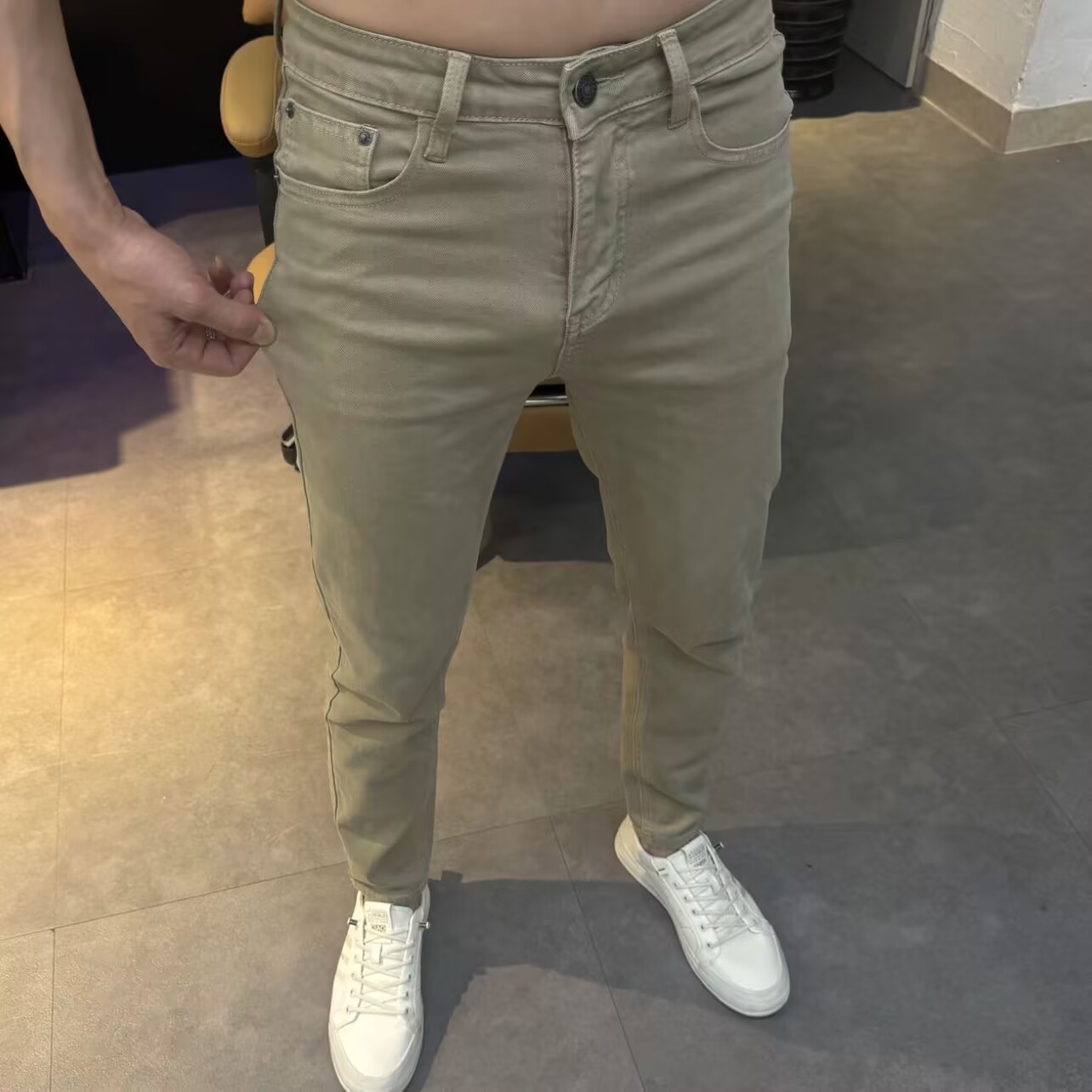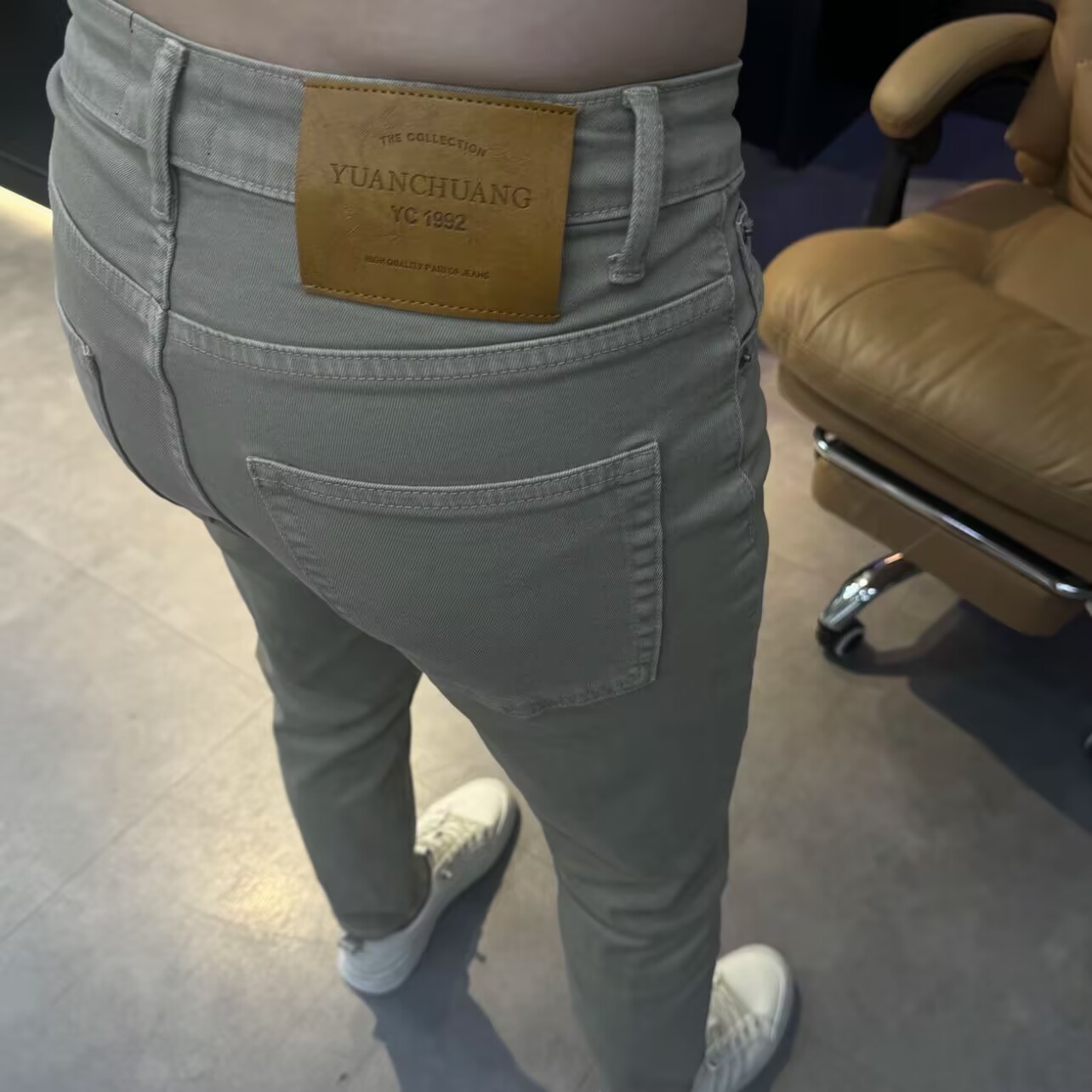 卡其色牛仔裤男修身小脚2025新款韩版潮流高弹力纯色净版休闲长裤