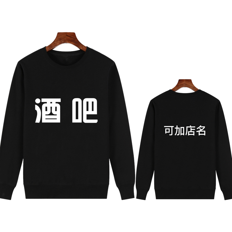 工作服长袖卫衣定制印字logo秋冬连帽圆领快餐火锅店服务员工作服