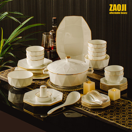 碗碟套装 家用i2023新款高端轻奢骨瓷餐具套碗组合陶瓷盘礼盒乔迁
