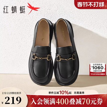 红蜻蜓乐福鞋女春季新款一脚蹬女鞋软底舒适黑色单鞋女士平底皮鞋
