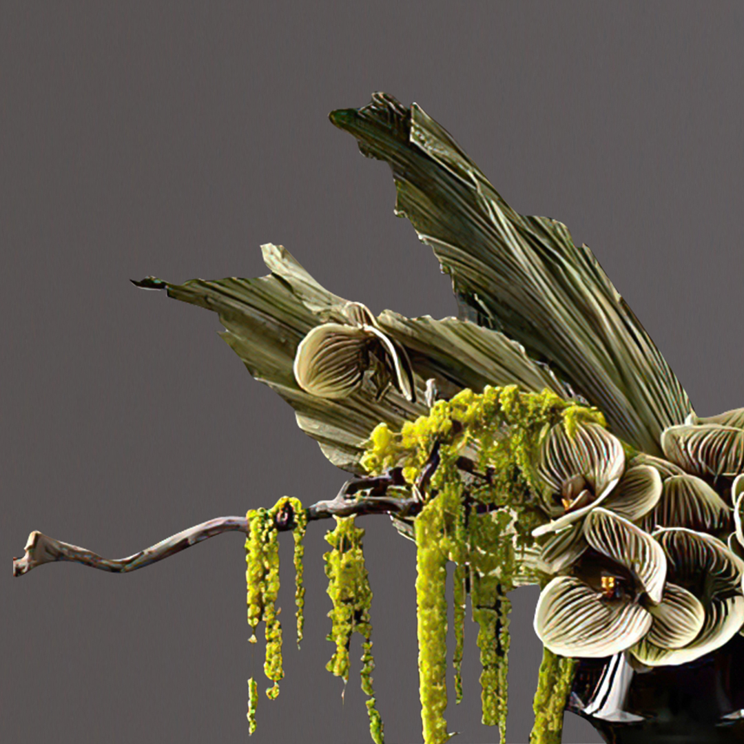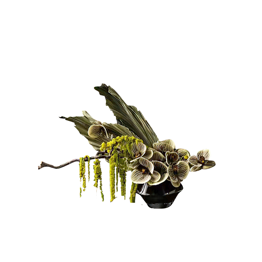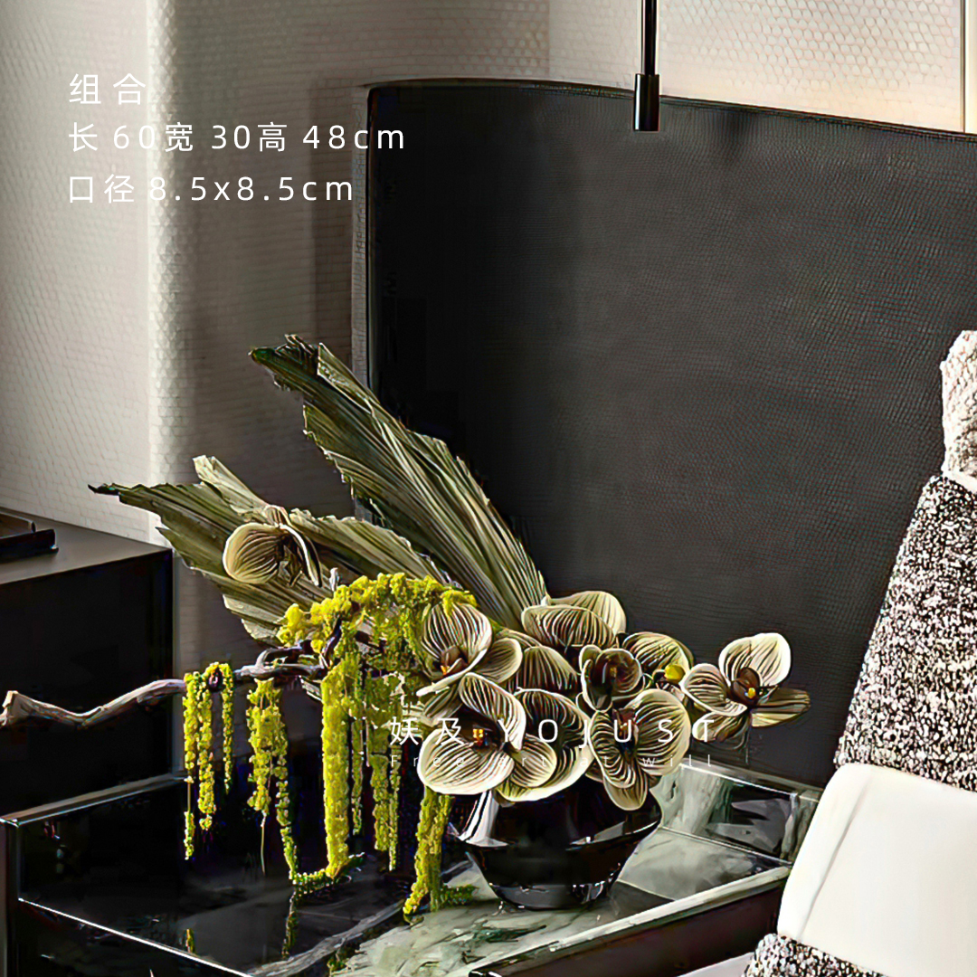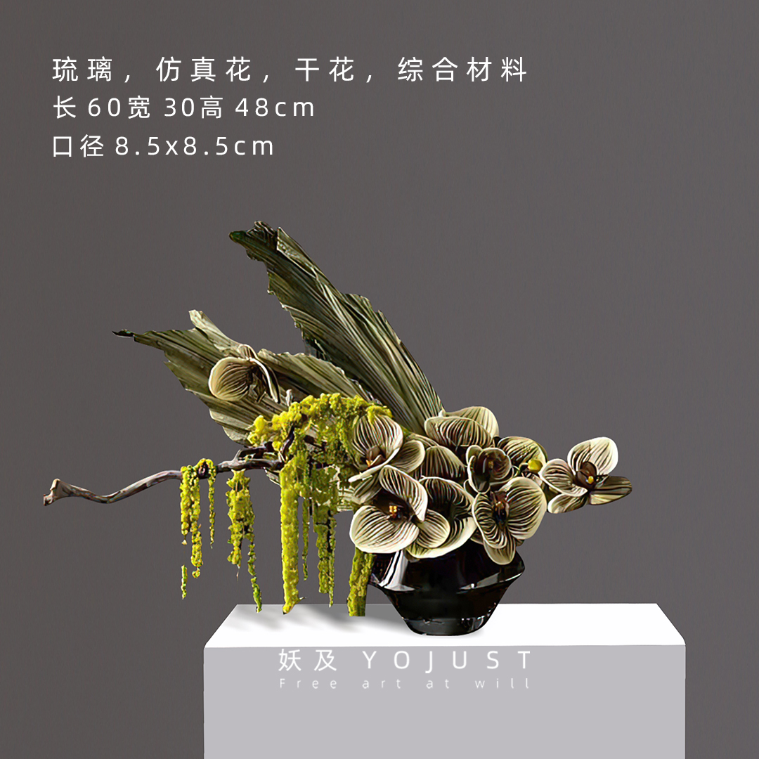 妖及新中式琉璃几何花艺蝴蝶兰仿真花艺样板间售楼处酒店餐厅摆件