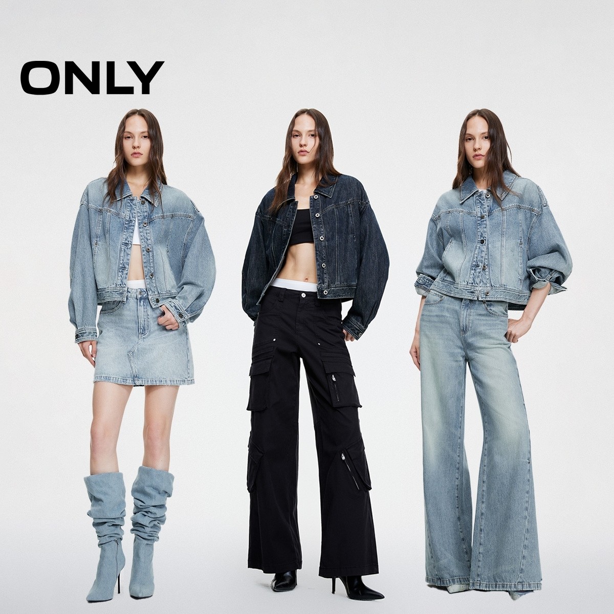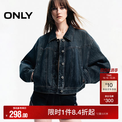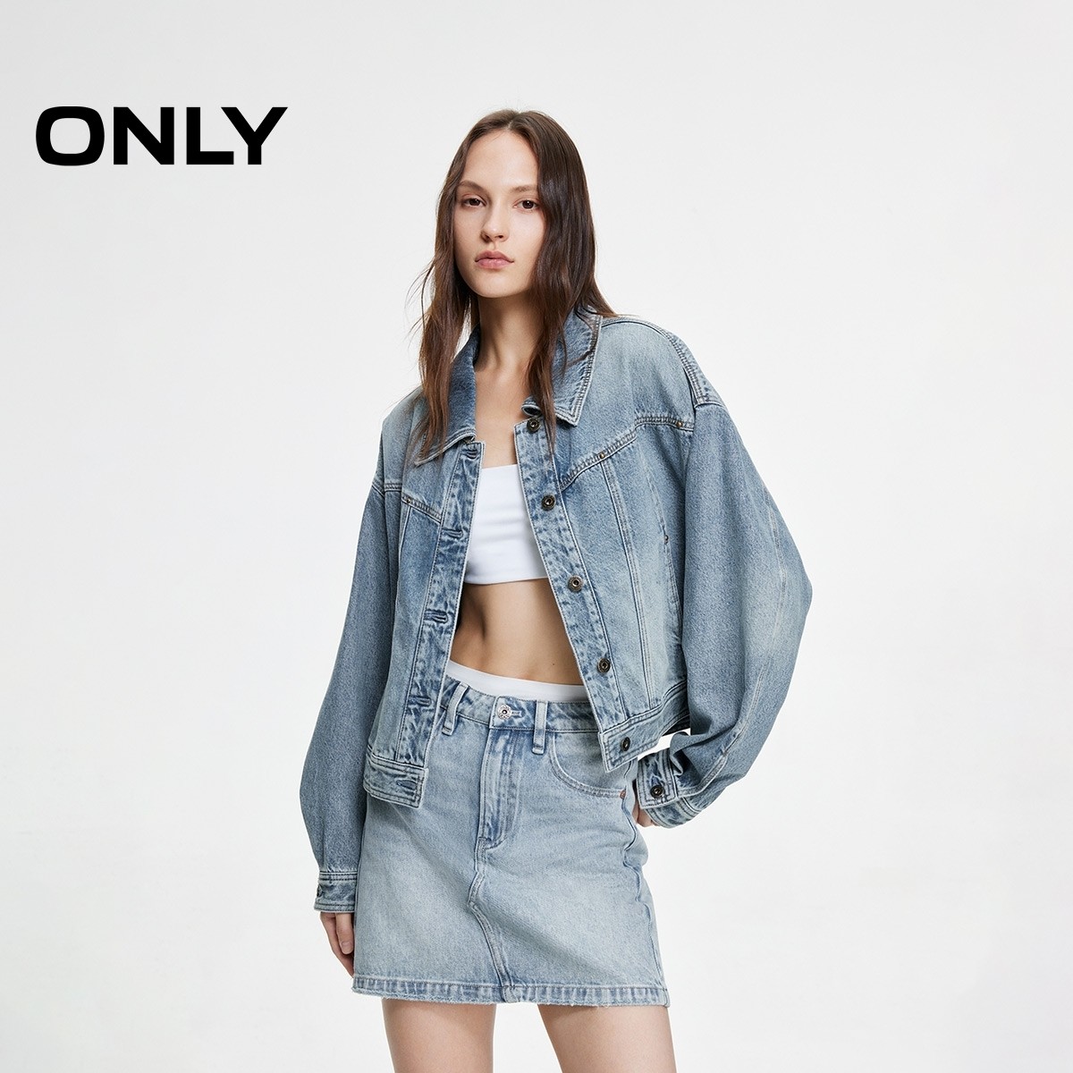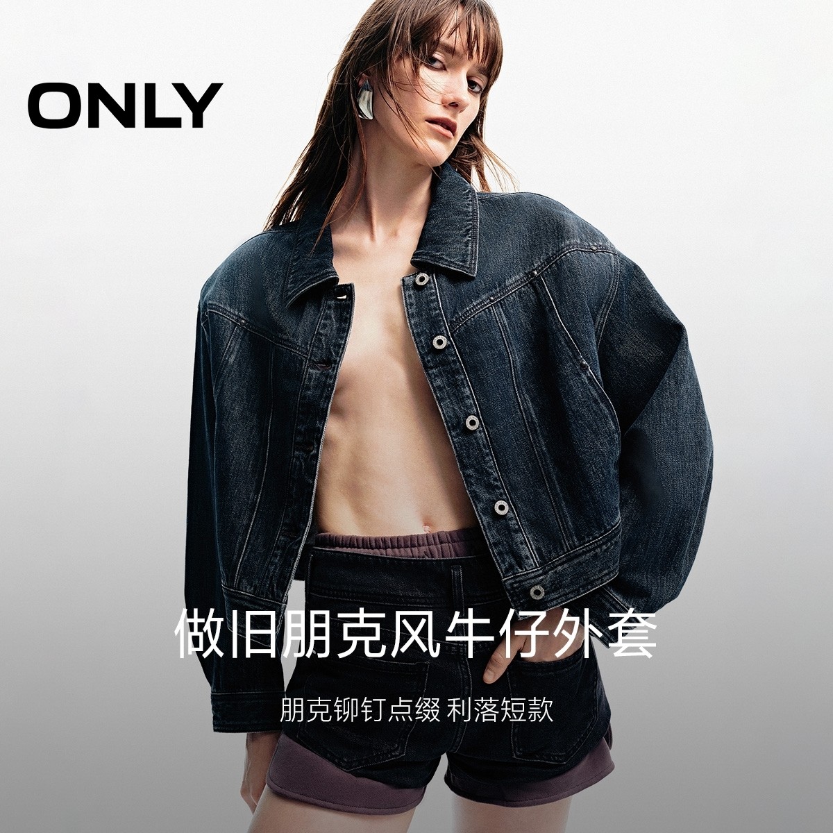 ONLY奥莱2025秋冬新款时尚复古做旧翻领牛仔短外套女