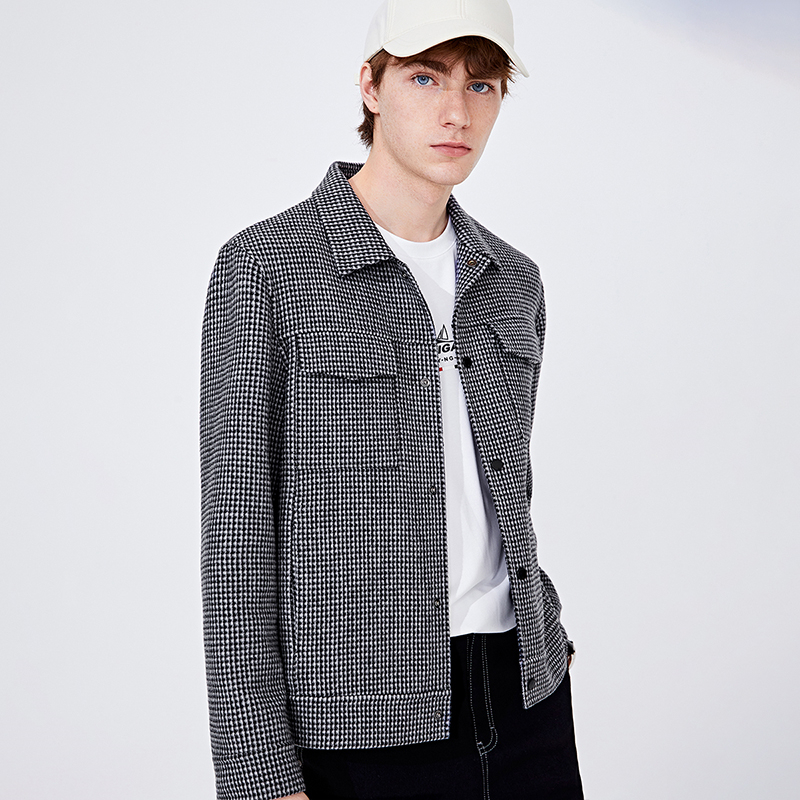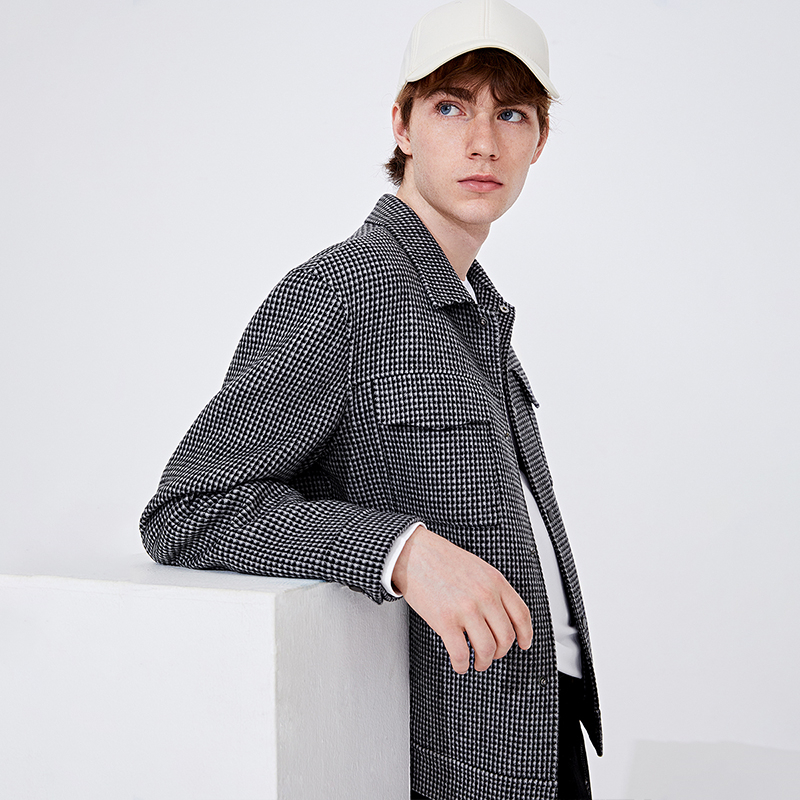 [羊毛]Navigare意大利小帆船工装格子夹克外套男秋季休闲毛呢大衣
