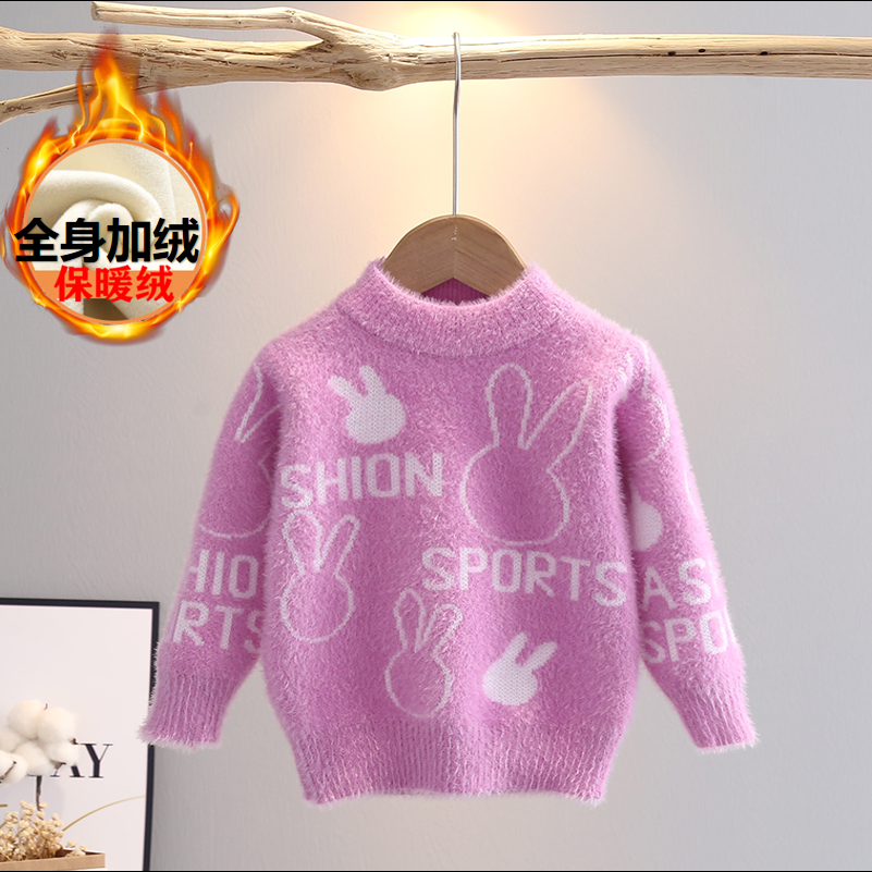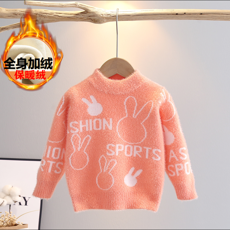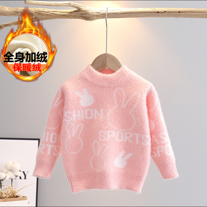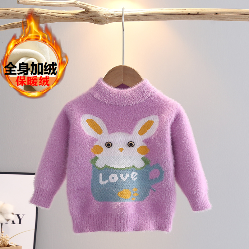 女童毛衣2025新款冬装卡通加厚毛线上衣洋气儿童水貂绒圆领针织衫