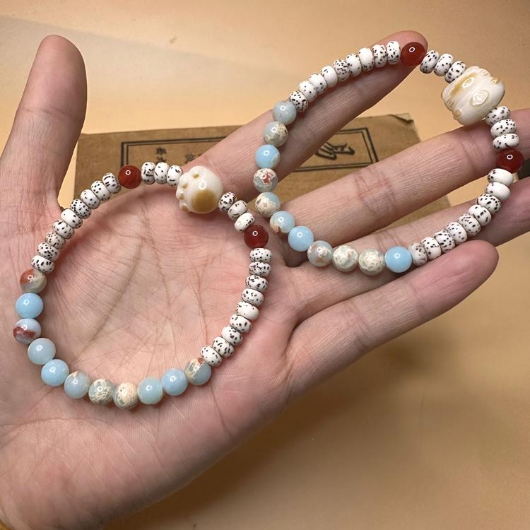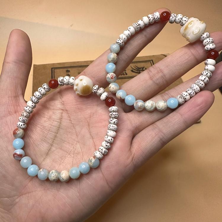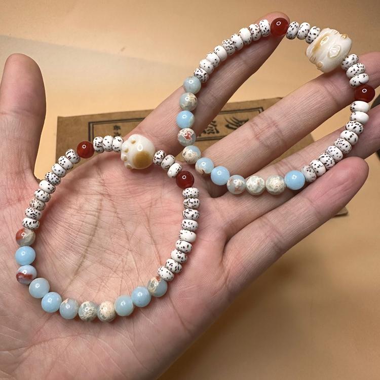 天然星月菩提手链寿山石招财猫玉石手串清新风网红款