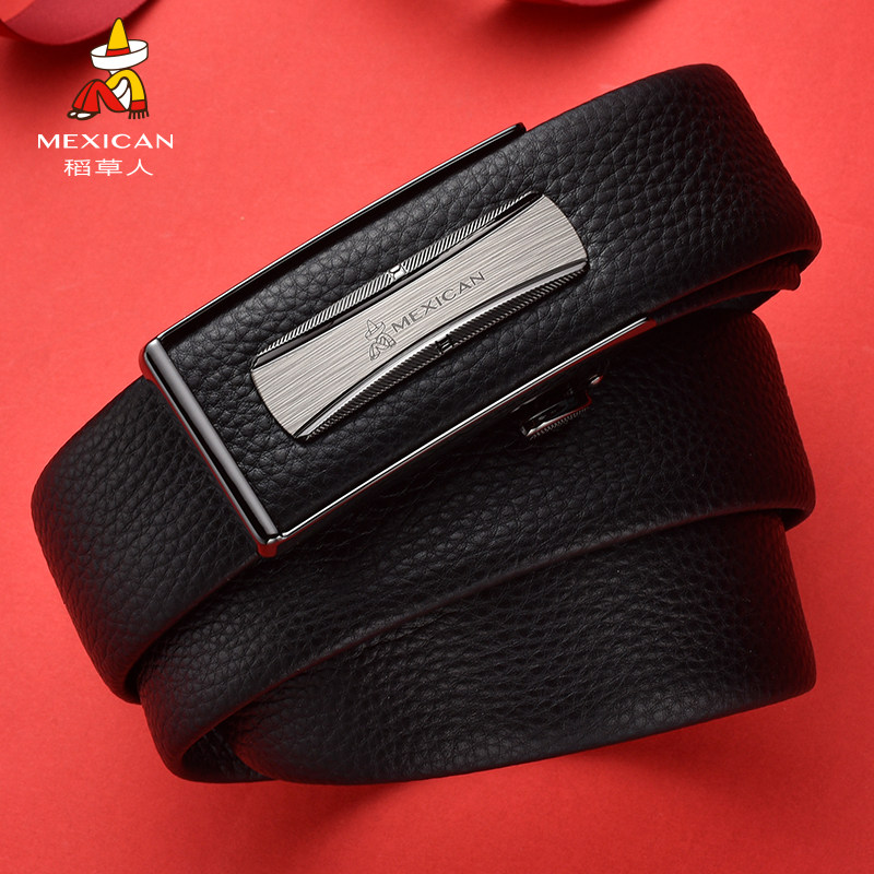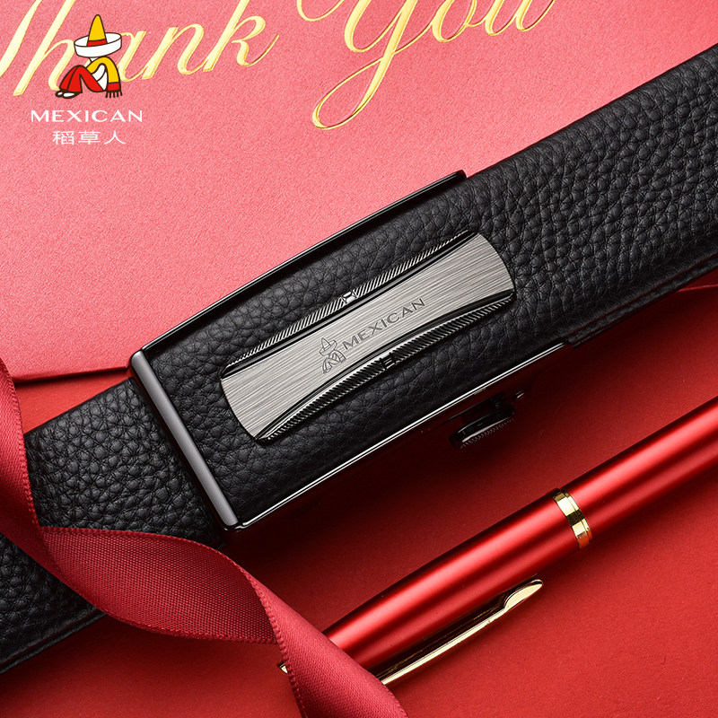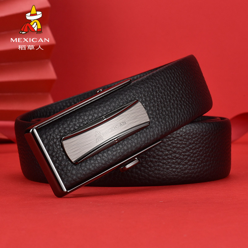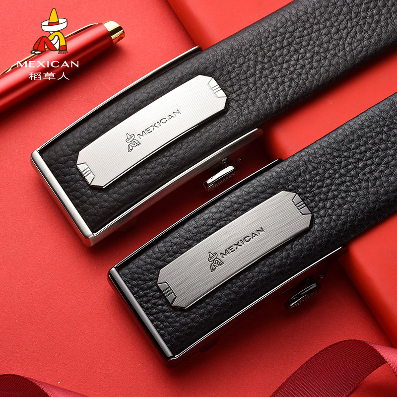稻草人男士皮带自动扣头层牛皮内穿款不露尾商务青年爸爸腰带裤带