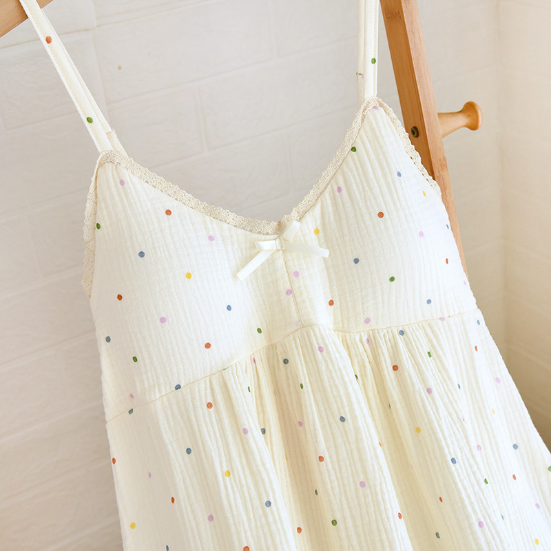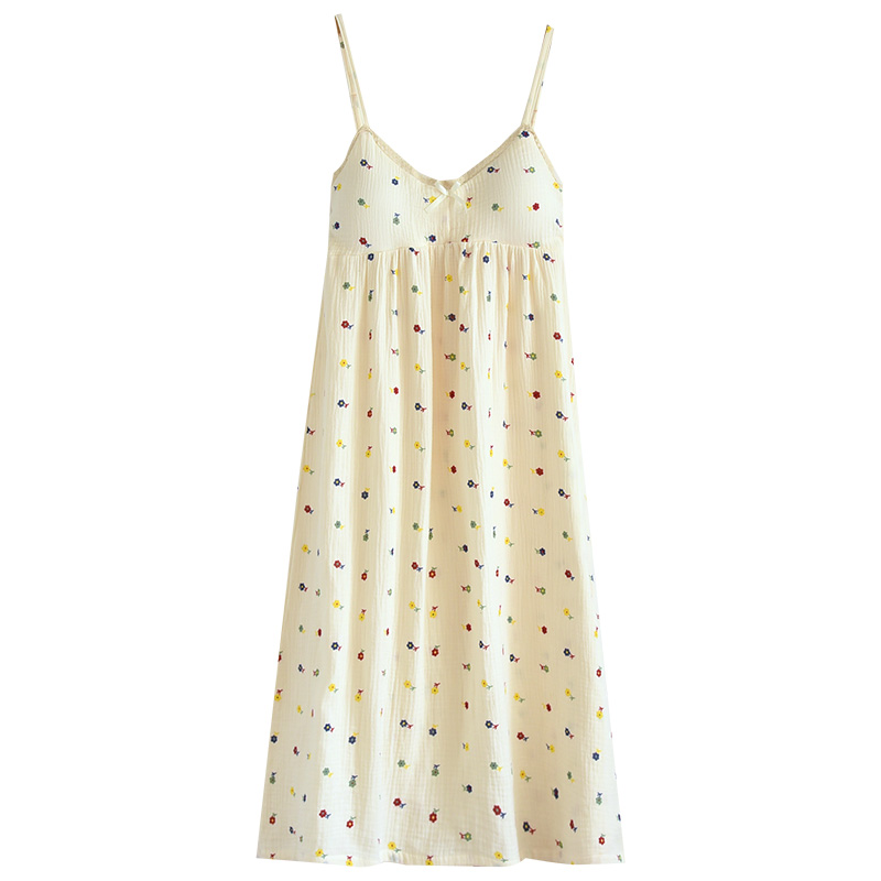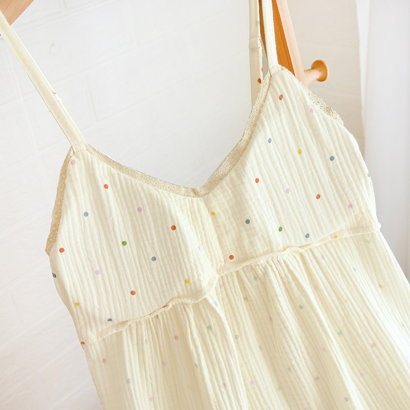 吊带睡裙夏季女款纯棉纱布家居服甜美全棉睡衣带T胸垫连衣裙免文