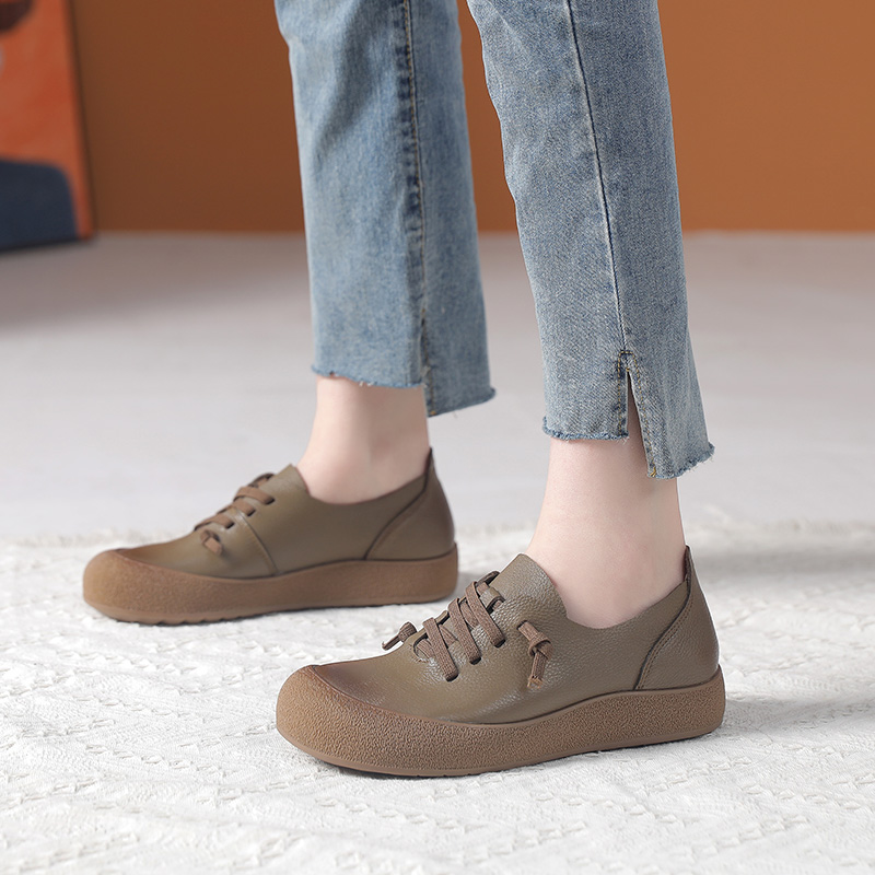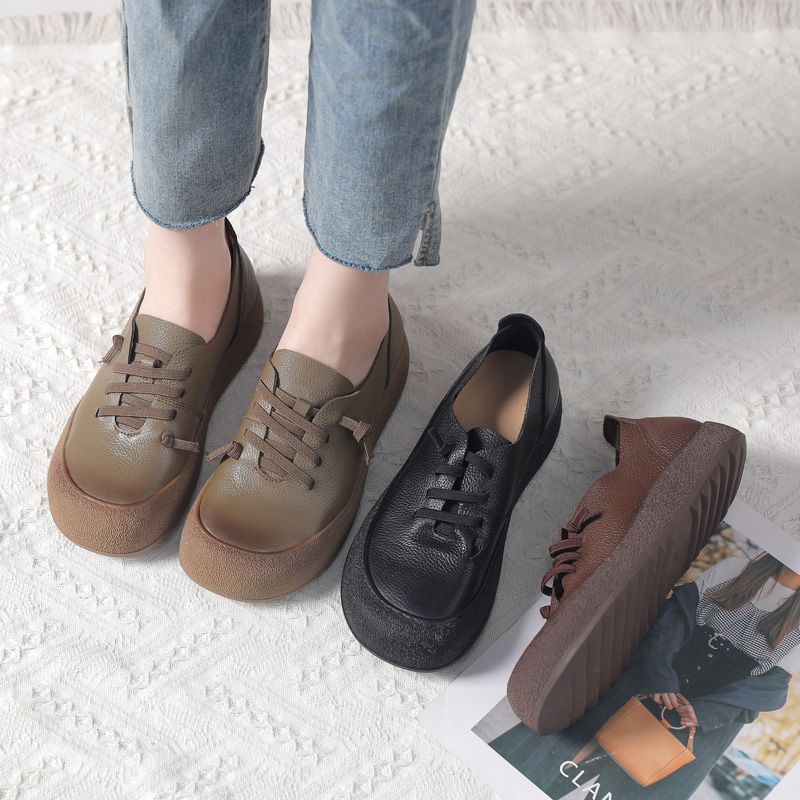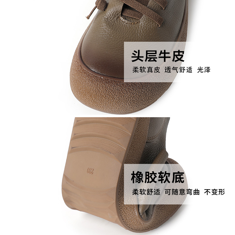 真皮圆头春秋款脚宽胖外穿肥单鞋新款软底大码女鞋懒人一脚蹬皮鞋