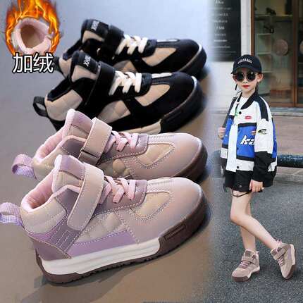 女童板鞋加绒童鞋秋冬新品儿童软底二棉运动鞋男童高帮老爹鞋