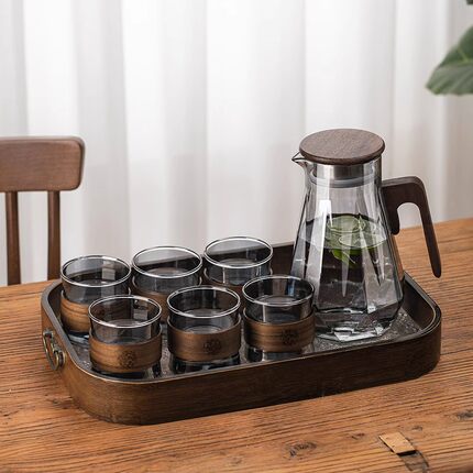 中式玻璃杯子家用水壶套装耐高温茶杯喝水杯防烫客厅待客杯具茶具