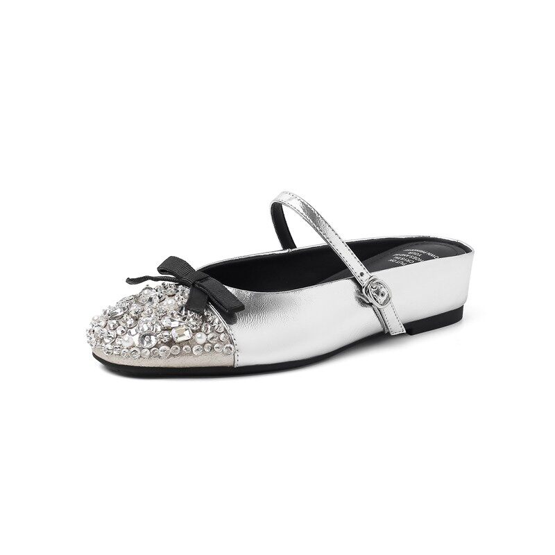 法式水钻蝴蝶结内增高小银鞋穆勒凉鞋绝美玛丽珍包头半拖女夏外穿