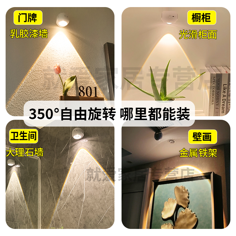 充电款射灯免接线布线免打孔家用led灯无线背景墙感应灯聚光壁灯