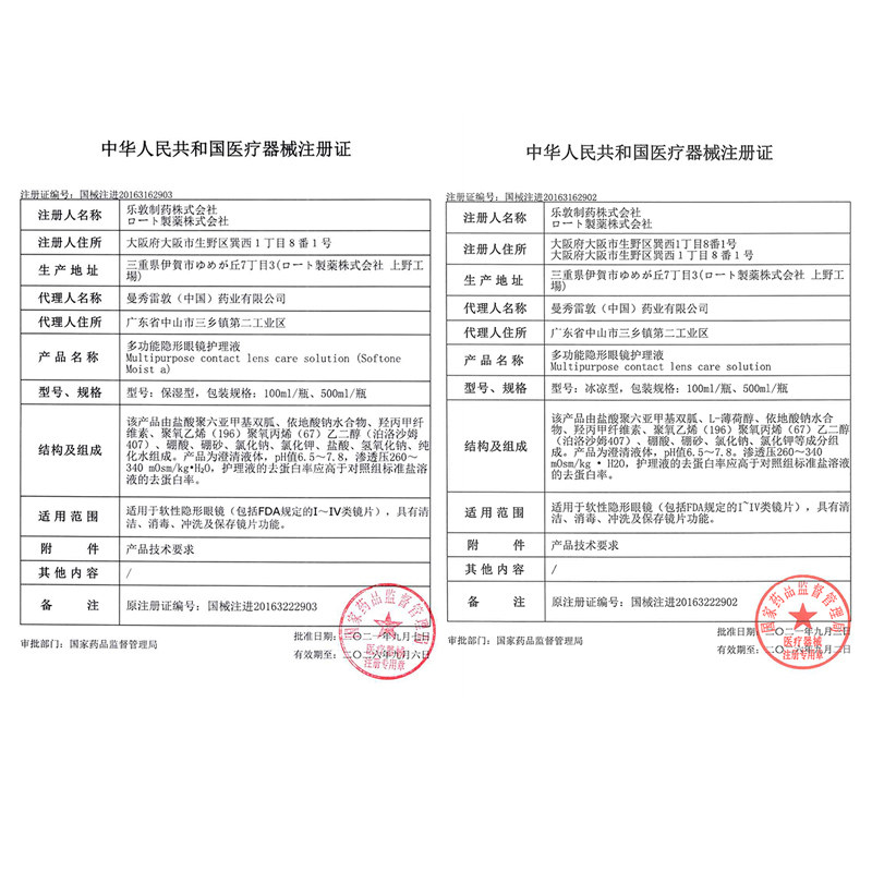 2大瓶装日本曼秀雷敦乐敦清c3美瞳彩色隐形眼镜保湿护理液500ml