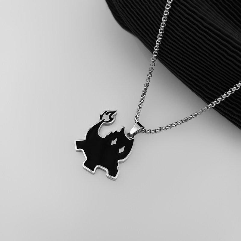 WHYBLUE 闪电黑猫项链男高级感吊坠小众冷淡风钛钢不掉色情侣百搭