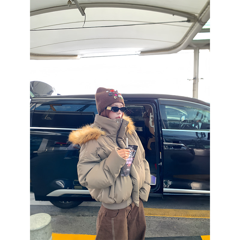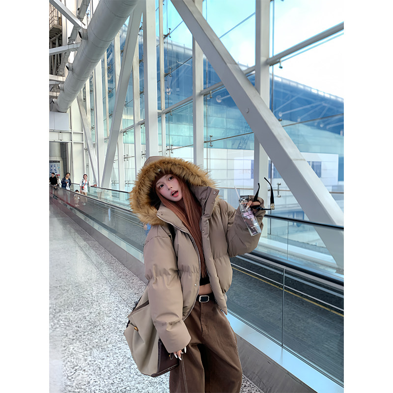 NECOYEP 冬季美式可拆卸毛领连帽棉衣男女宽松百搭保暖面包服外套