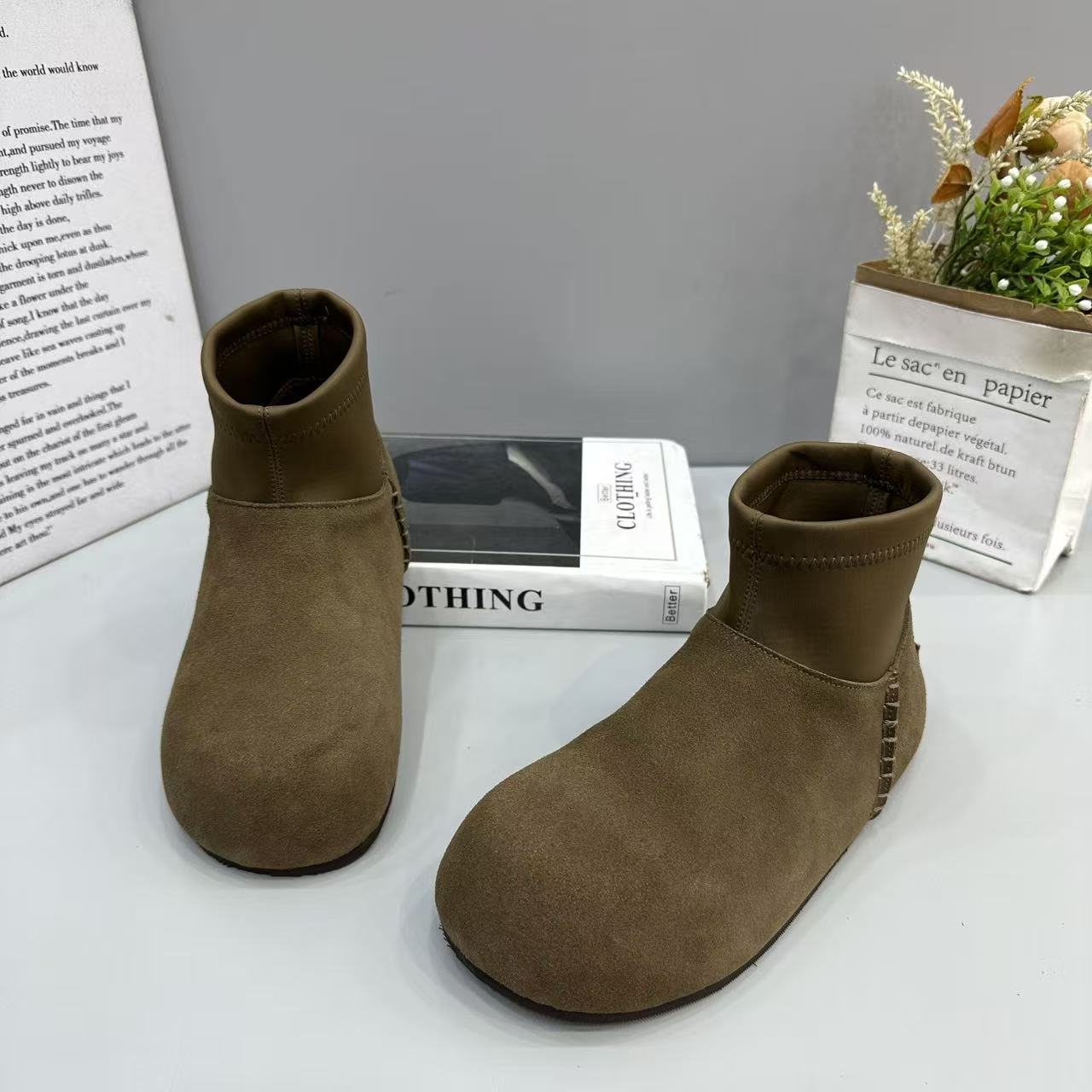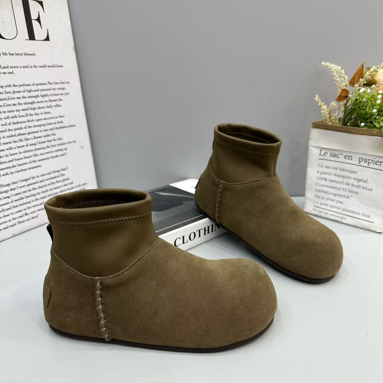 欧货复古圆头时尚短靴女2025秋冬新款百搭勃肯靴小众内增高面包靴