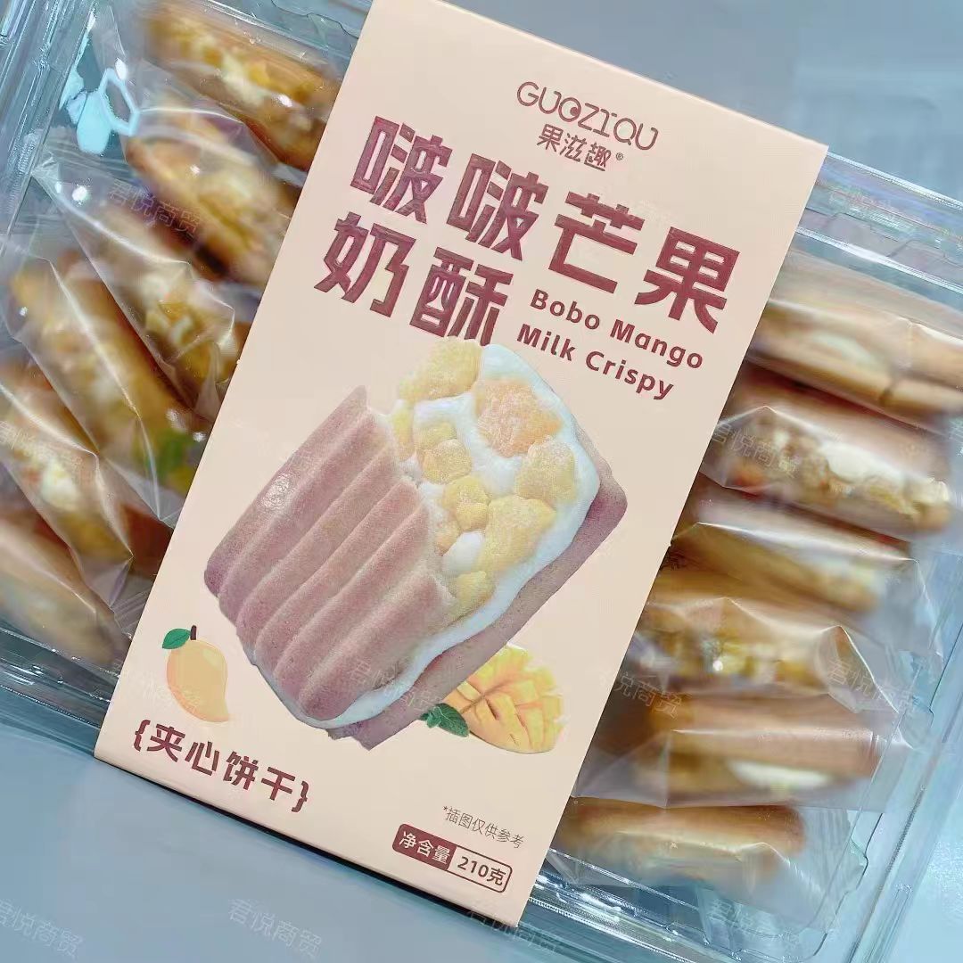 啵啵奶酥夹心饼干果滋趣蔓越莓牛扎夹心饼干曲奇拉丝210克盒装
