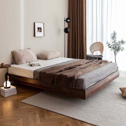 天坛家具北美黑胡桃木悬浮床实木床架简约民宿无床头床日式榻榻米
