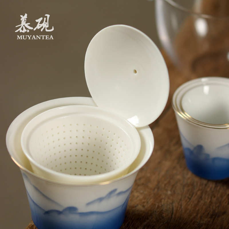 慕砚陶瓷旅行茶具套装创意手绘一壶三杯盖碗便携包快客盖杯泡茶器