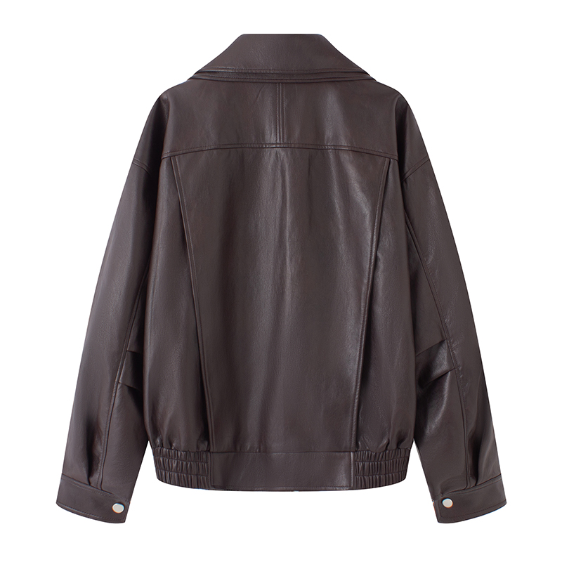 艾诺丝商场同款2025秋季新款气质通勤宽松皮衣夹克外套女AR103035